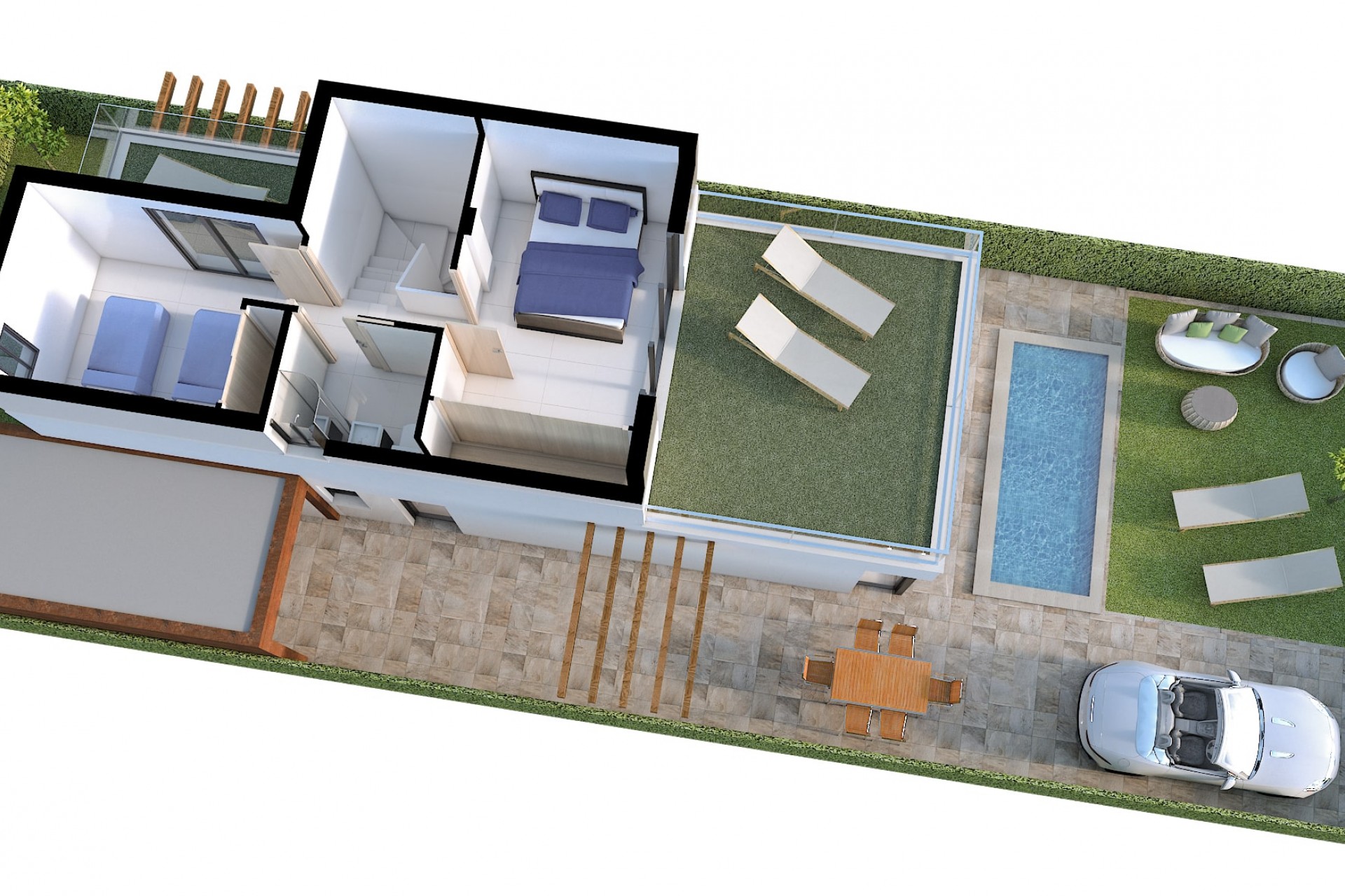 Las villas están listas para entrar a vivir; 3 dormitorios, 2 baños, aseo, cocina totalmente equipada, piscina privada, amplias terrazas, garaje con portón eléctrico, ....