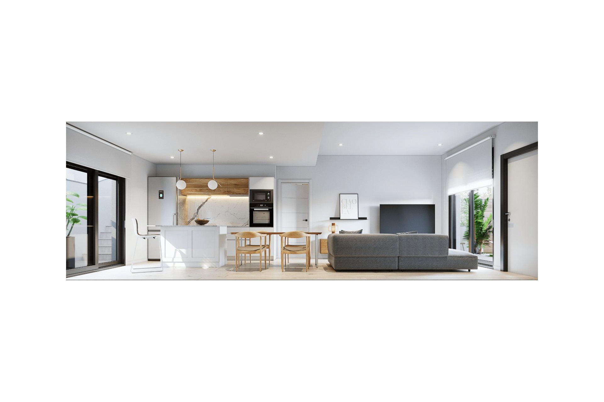 Este residencial consta de 28 villas con todas las áreas de vida en la planta baja (3 dormitorios y 2 baños), una gran terraza en la azotea y su propia piscina privada donde se puede disfrutar del sol de la costa mediterránea.