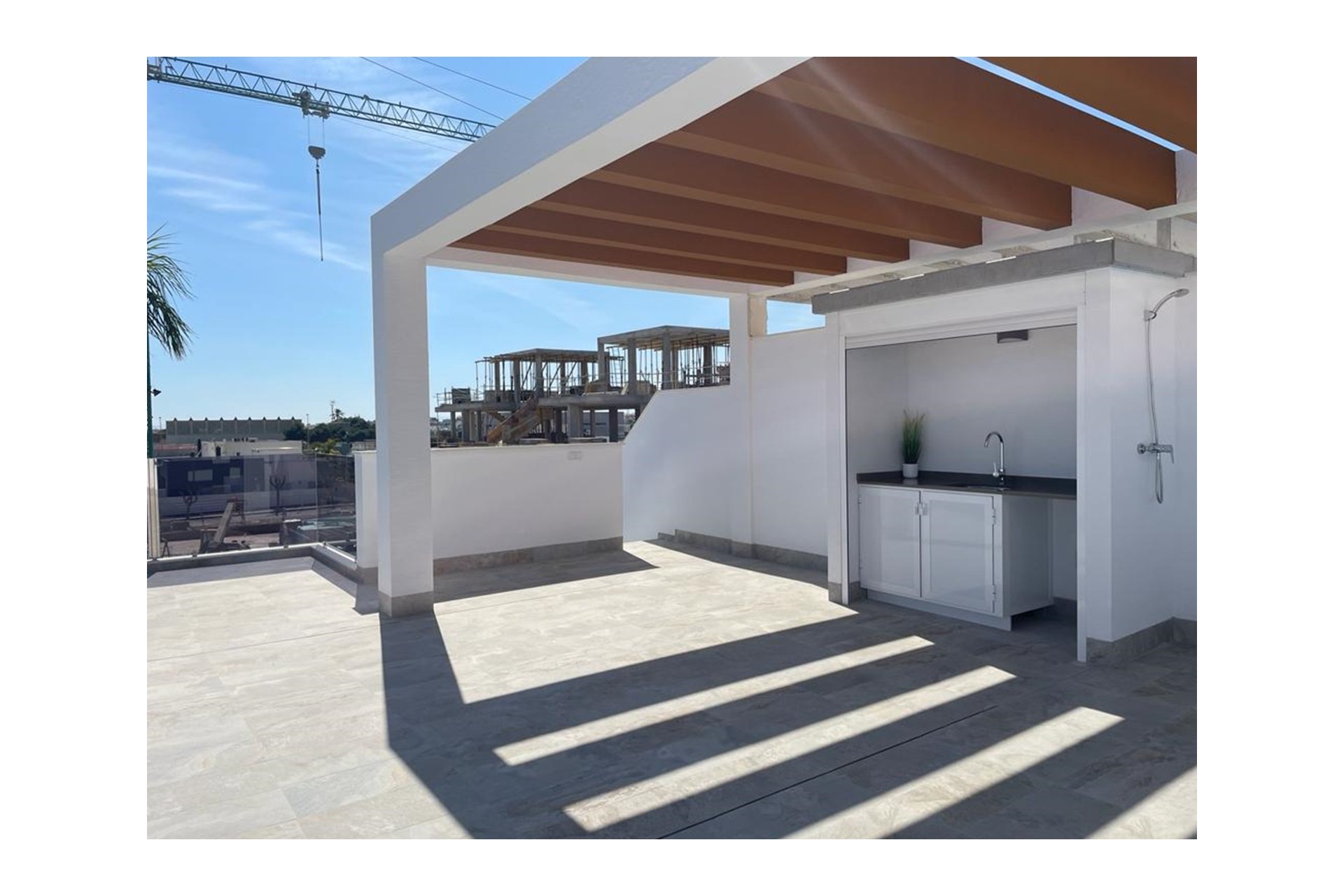 Los pisos de la planta baja tienen un gran jardín, los de la primera planta pueden disfrutar de una amplia terraza y los de la azotea tienen un solárium con jacuzzi.