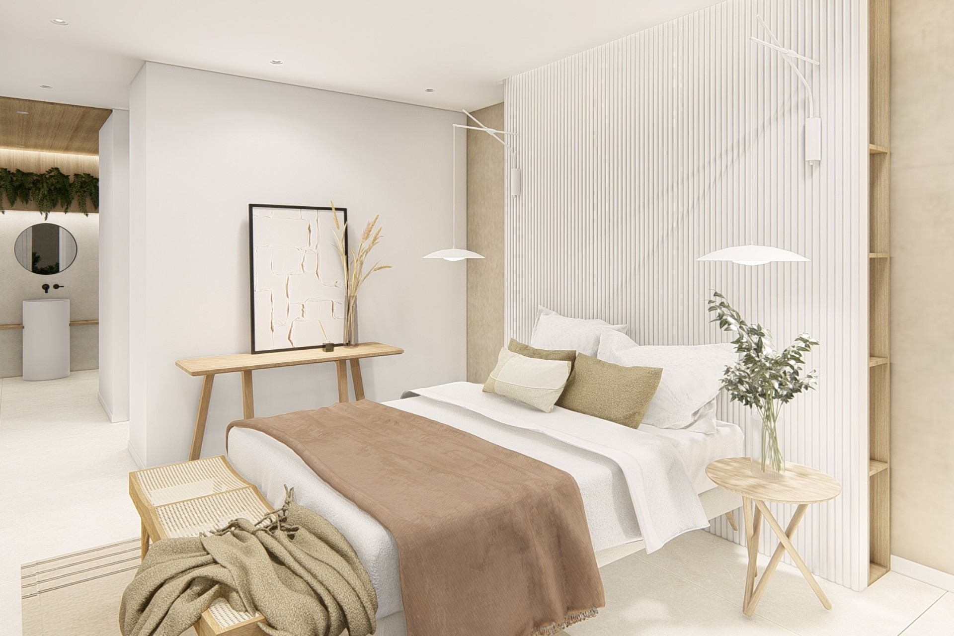 Las zonas de exterior, con dimensiones de entre 400 y 500 metros de parcela incluyen amplias terrazas, jardín, garaje para dos coches y piscina privada para vivir al máximo del estilo de vida mediterráneo disfrutando del sol, la luz y la naturaleza.