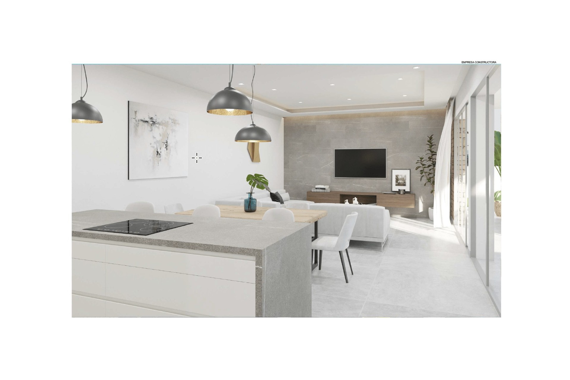 En la planta principal, desde la entrada se accede al hall donde se encuentra la zona de estar, aquí podemos encontrar la cocina totalmente abierta al comedor y al salón desde donde se tiene acceso directo a la terraza. Una vez en la terraza podemos encontrar la piscina la cual viene con una zona de relax donde poder disfrutar del sol y las vistas o de una cena en la barbacoa. Junto a la cocina también hay un aseo.