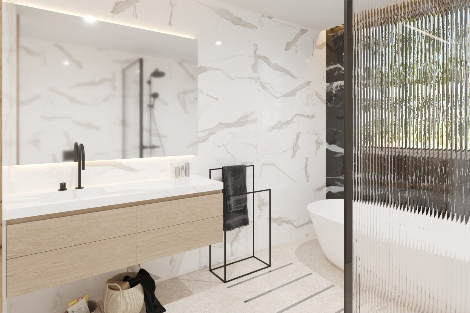 En la misma planta, al otro lado, encontramos un dormitorio principal en suite con su baño privado, un aseo y un amplio trastero.