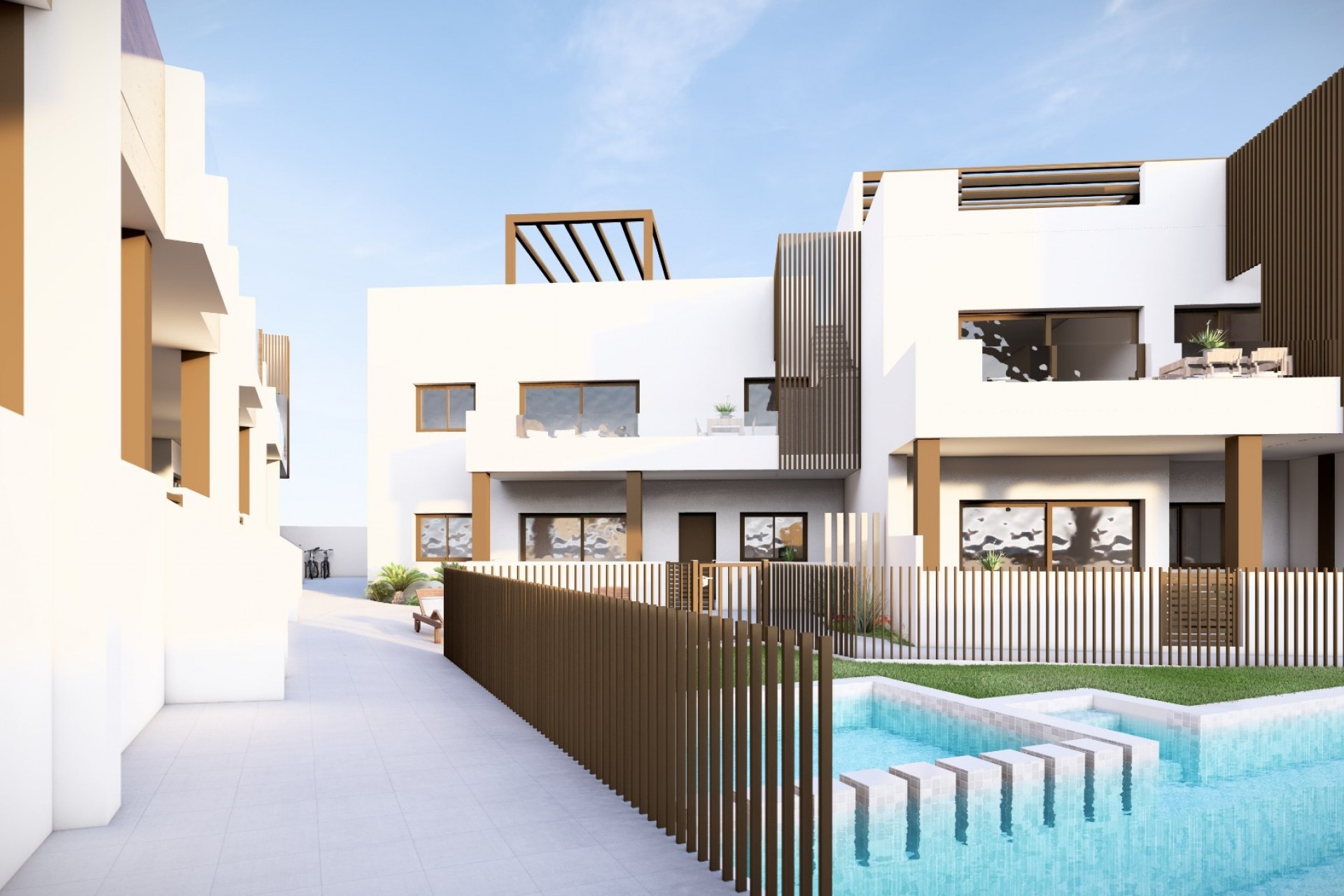 Complejo de lujo de 16 viviendas con piscina comunitaria donde podrá disfrutar del sol todo el año. Los pisos tienen 3 dormitorios y 2 baños totalmente equipados. Preciosos pisos con parking, terraza en la planta baja y solarium con cocina de verano en las plantas superiores.