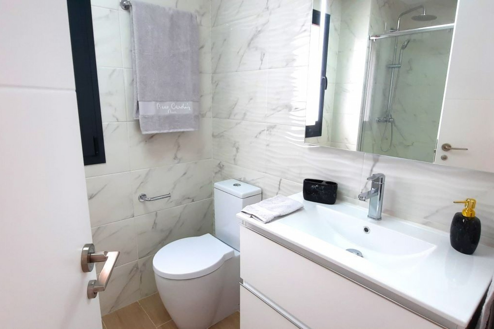Por supuesto, el proyecto está equipado con ascensores, una hermosa piscina comunitaria con zona para tomar el sol y hay un aparcamiento para bicicletas eléctricas. Cada piso tiene también su propia plaza de aparcamiento.