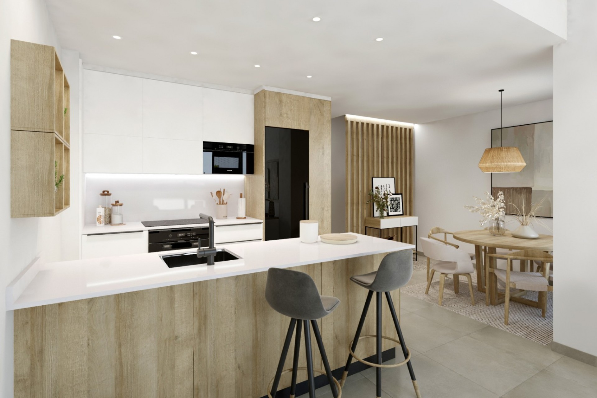 Cada vivienda cuenta con tres amplios dormitorios y dos baños, con calefacción por suelo radiante en los baños para mayor confort. La cocina totalmente equipada está diseñada con acabados de alta calidad, combinando estilo y funcionalidad. Los armarios empotrados proporcionan un amplio espacio de almacenamiento, mientras que la preinstalación de aire acondicionado permite un control climático personalizado.