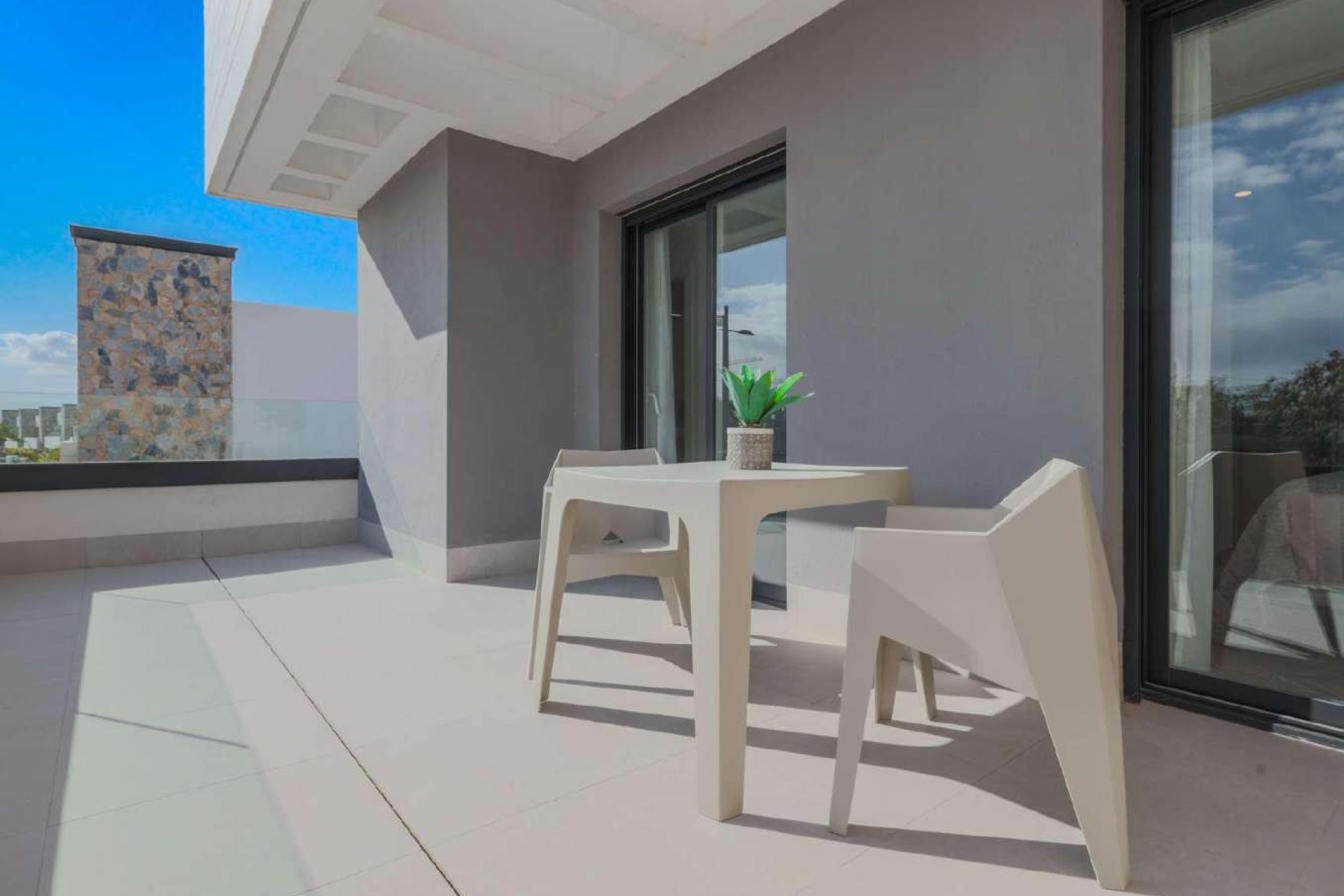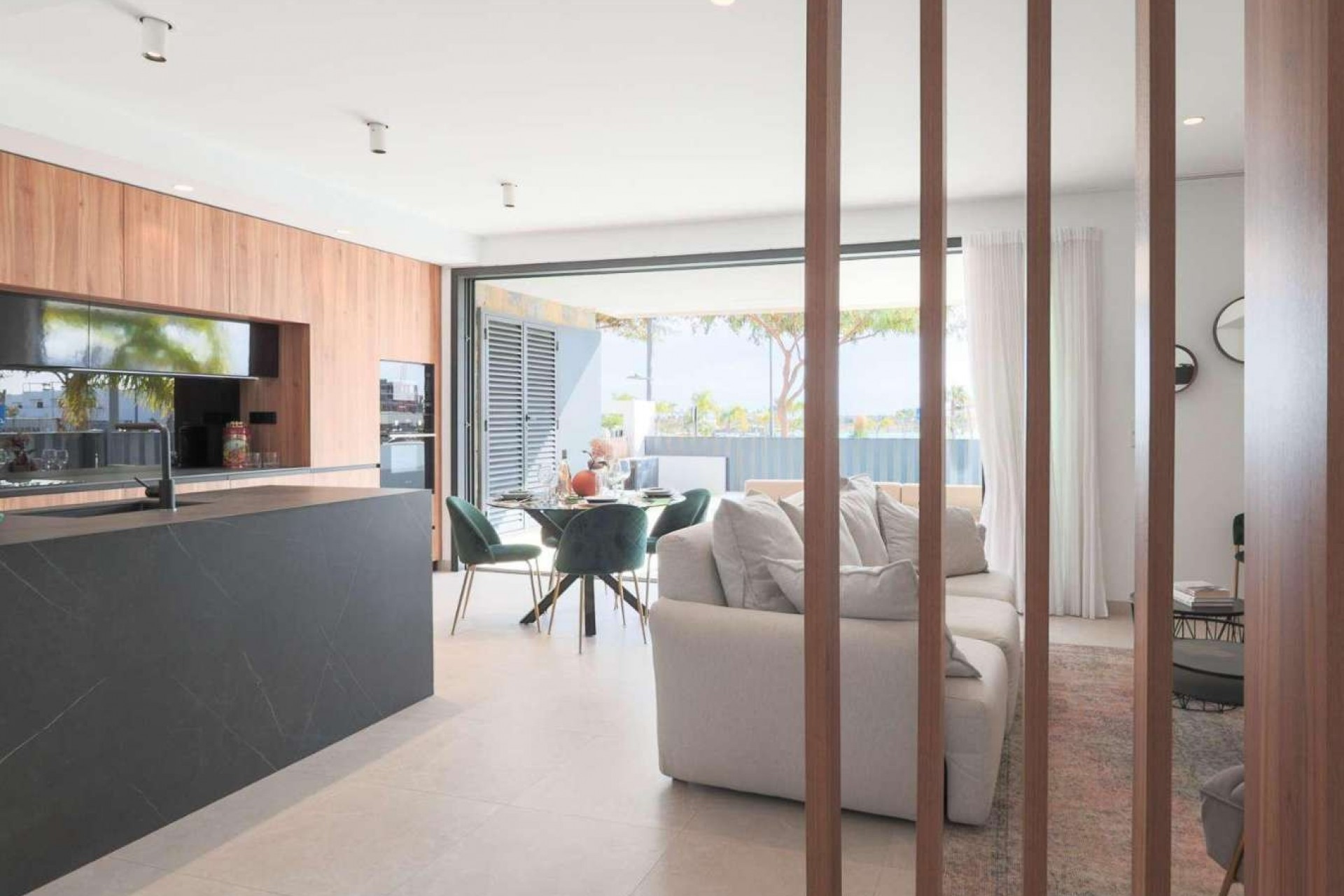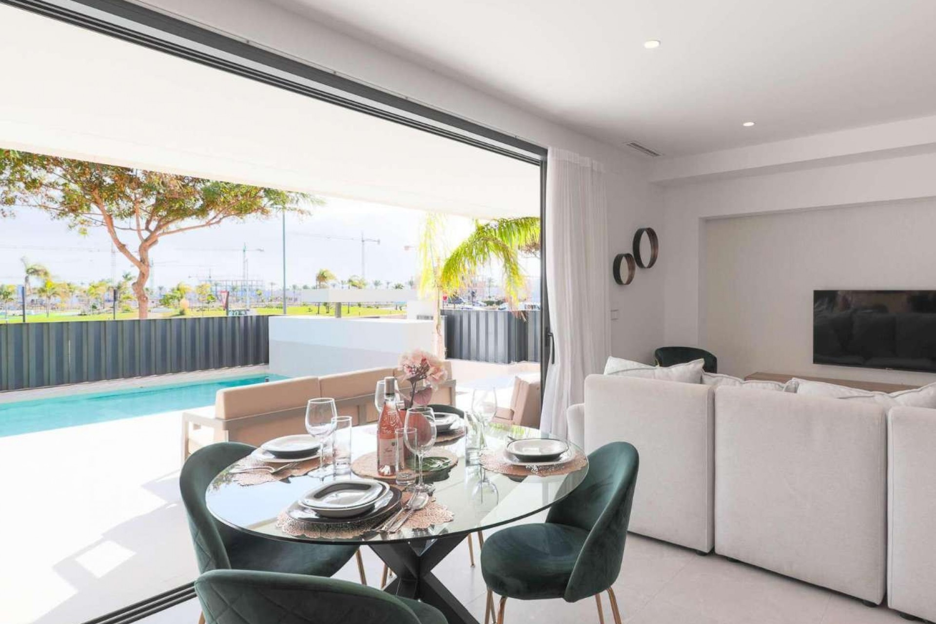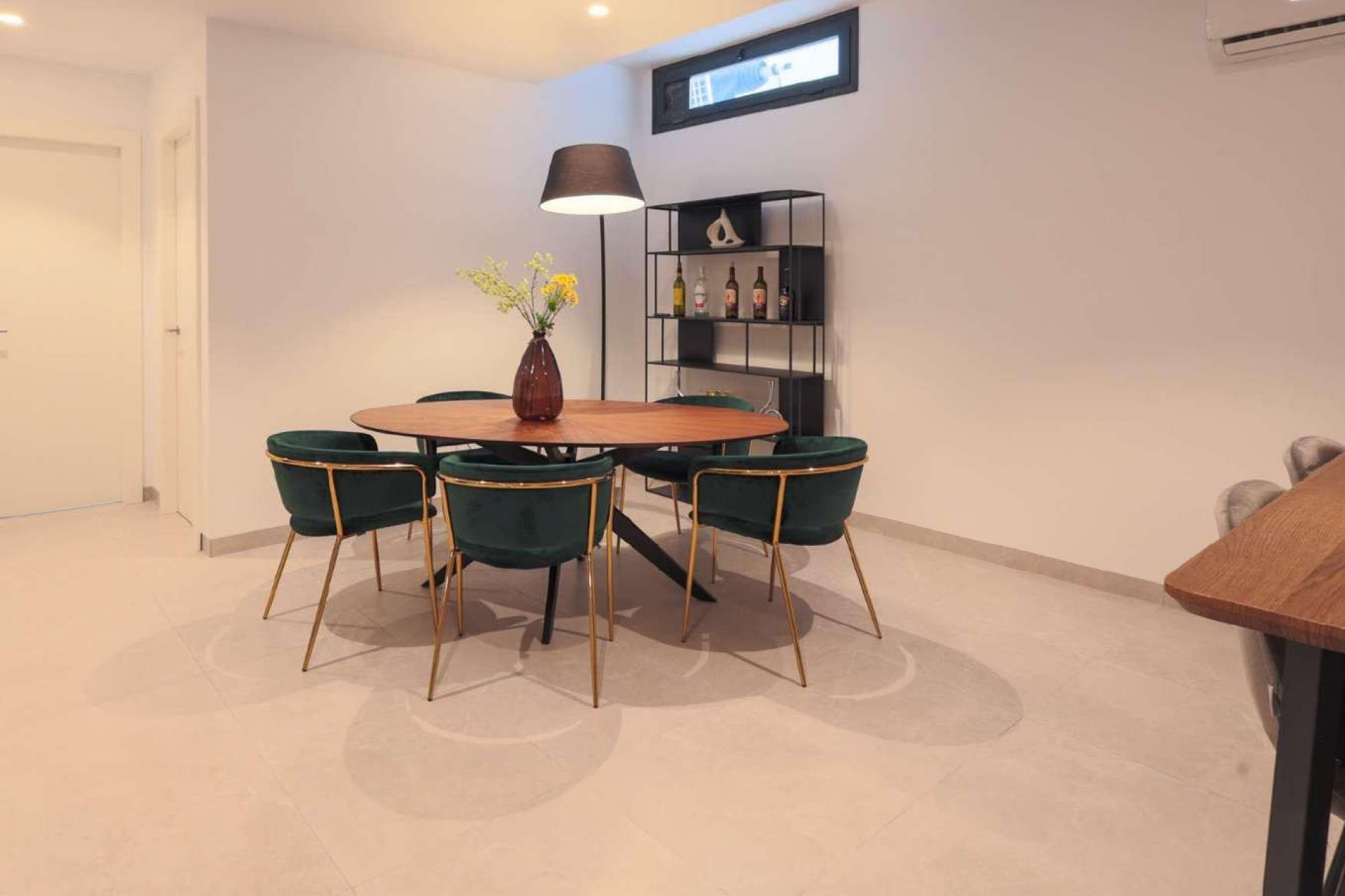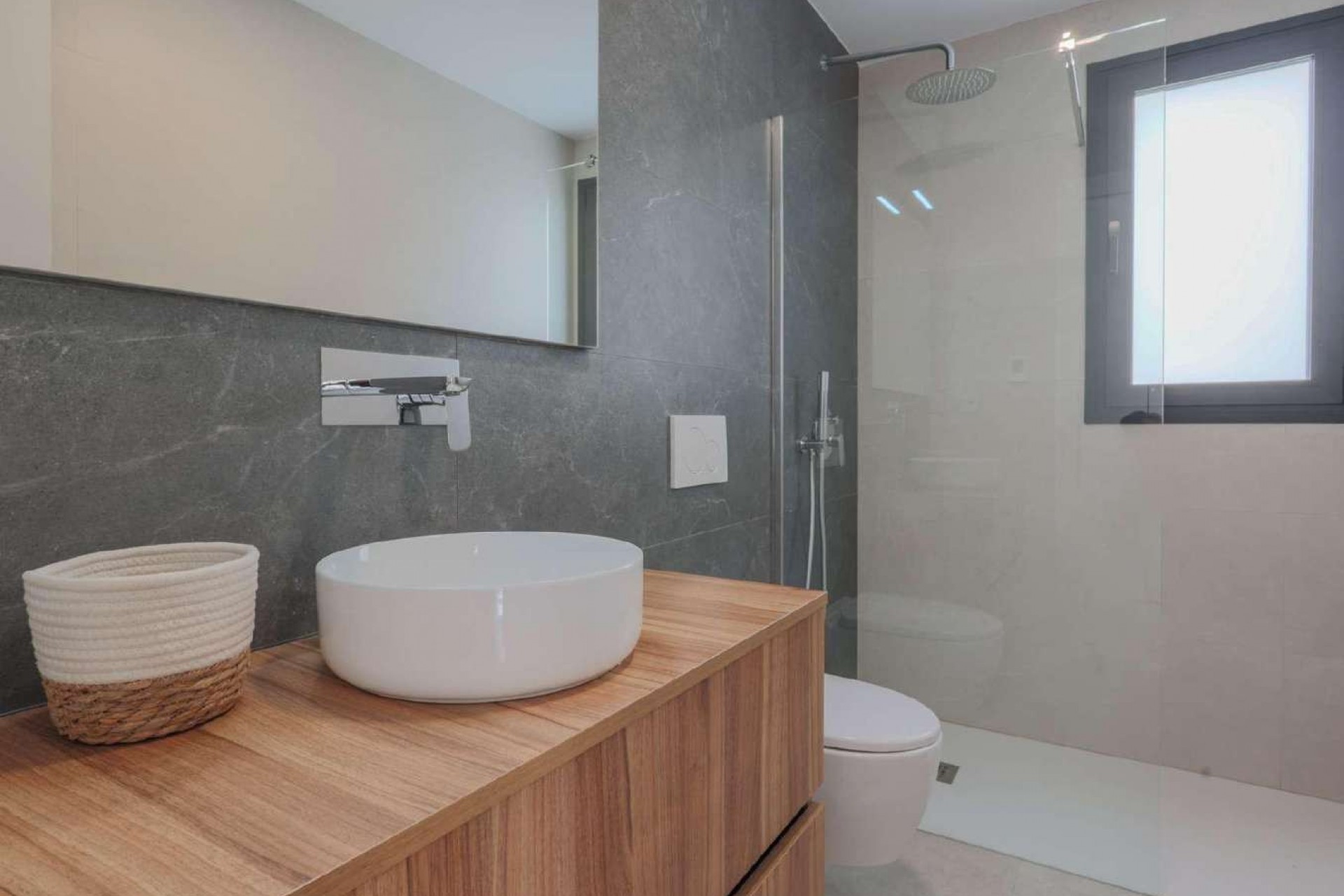 Cada villa cuenta con tres amplios dormitorios y tres elegantes baños, además de un aseo independiente para invitados. La distribución es funcional y bien pensada, diseñada para ofrecer el máximo confort tanto a familias como a parejas. El salón, bañado en luz natural, se conecta perfectamente con el jardín privado con piscina, el lugar ideal para relajarse o disfrutar de largas y cálidas noches de verano. El amplio solárium en la azotea invita a disfrutar del clima mediterráneo, con infinitas posibilidades para instalar una cocina exterior, zona chill-out o jacuzzi.