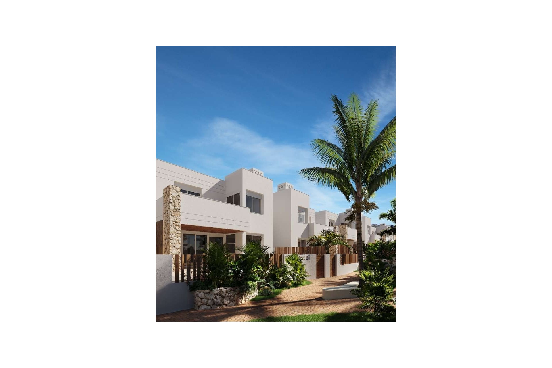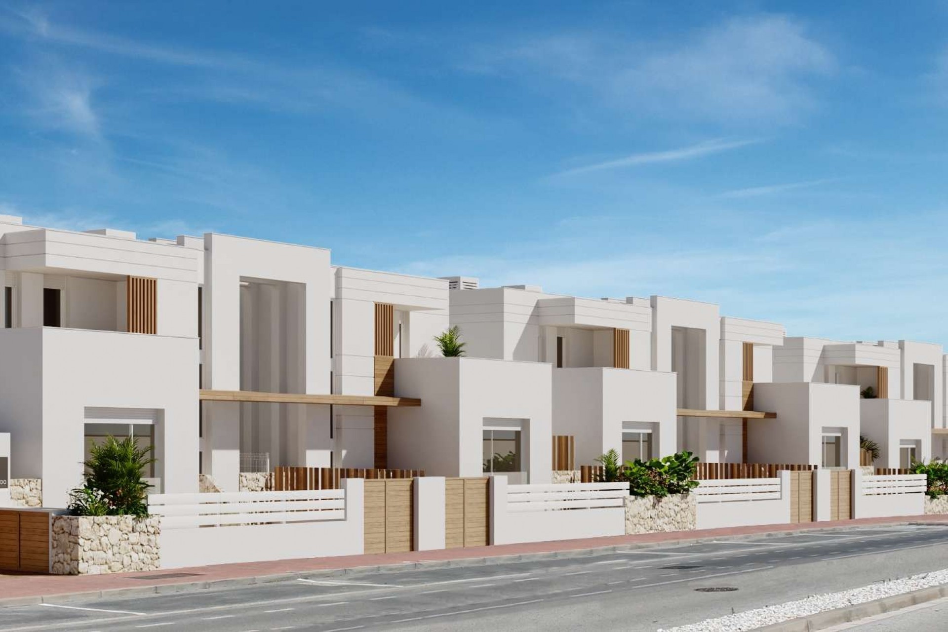 Cada vivienda incluye un garaje privado, la mayoría con acceso directo a la casa, y está equipada con preinstalación para punto de carga de vehículos eléctricos. En el interior, los acabados refinados y las distribuciones prácticas crean un ambiente cálido y acogedor. Las cocinas se entregan totalmente equipadas con electrodomésticos, y los baños disponen de suelo radiante para mayor confort. También existe la posibilidad de añadir una piscina privada o una terraza en la azotea, ideal para disfrutar al máximo del clima mediterráneo y del entorno costero excepcional.