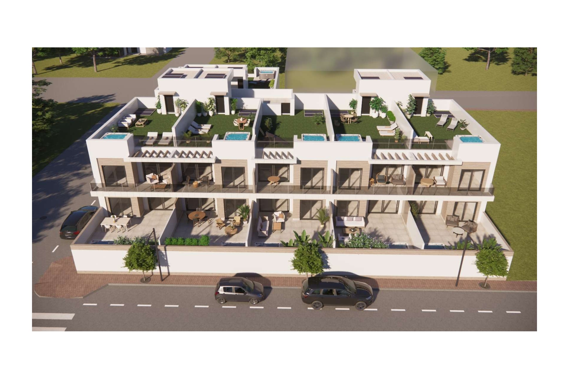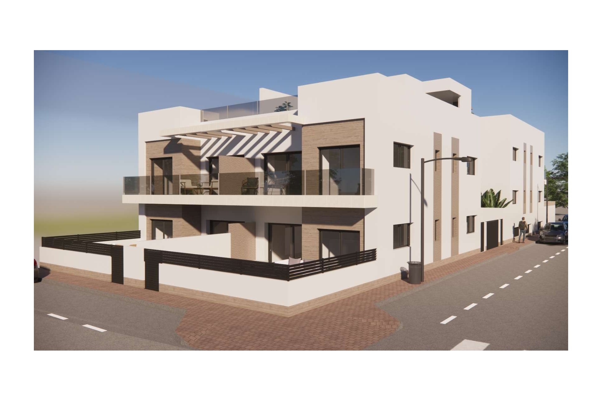 En Rojales viviréis con estilo y confort, con mucho espacio para disfrutar de la vida al aire libre. Estos apartamentos modernos combinan luminosidad, funcionalidad y arquitectura contemporánea. Podéis elegir entre un apartamento en planta baja con una amplia terraza o un apartamento en primera planta con un espacioso solárium, donde relajaros o cenar bajo las estrellas con total privacidad. De forma opcional, la terraza o el solárium pueden equiparse con jacuzzi (con coste adicional).