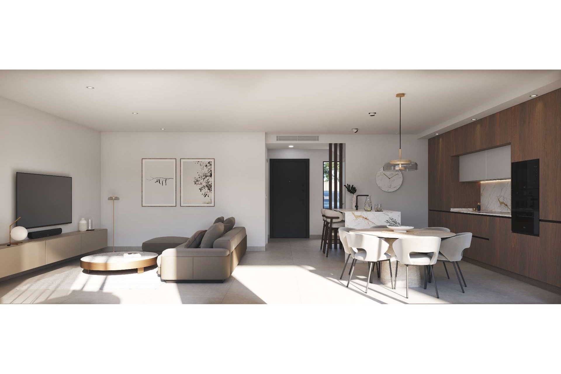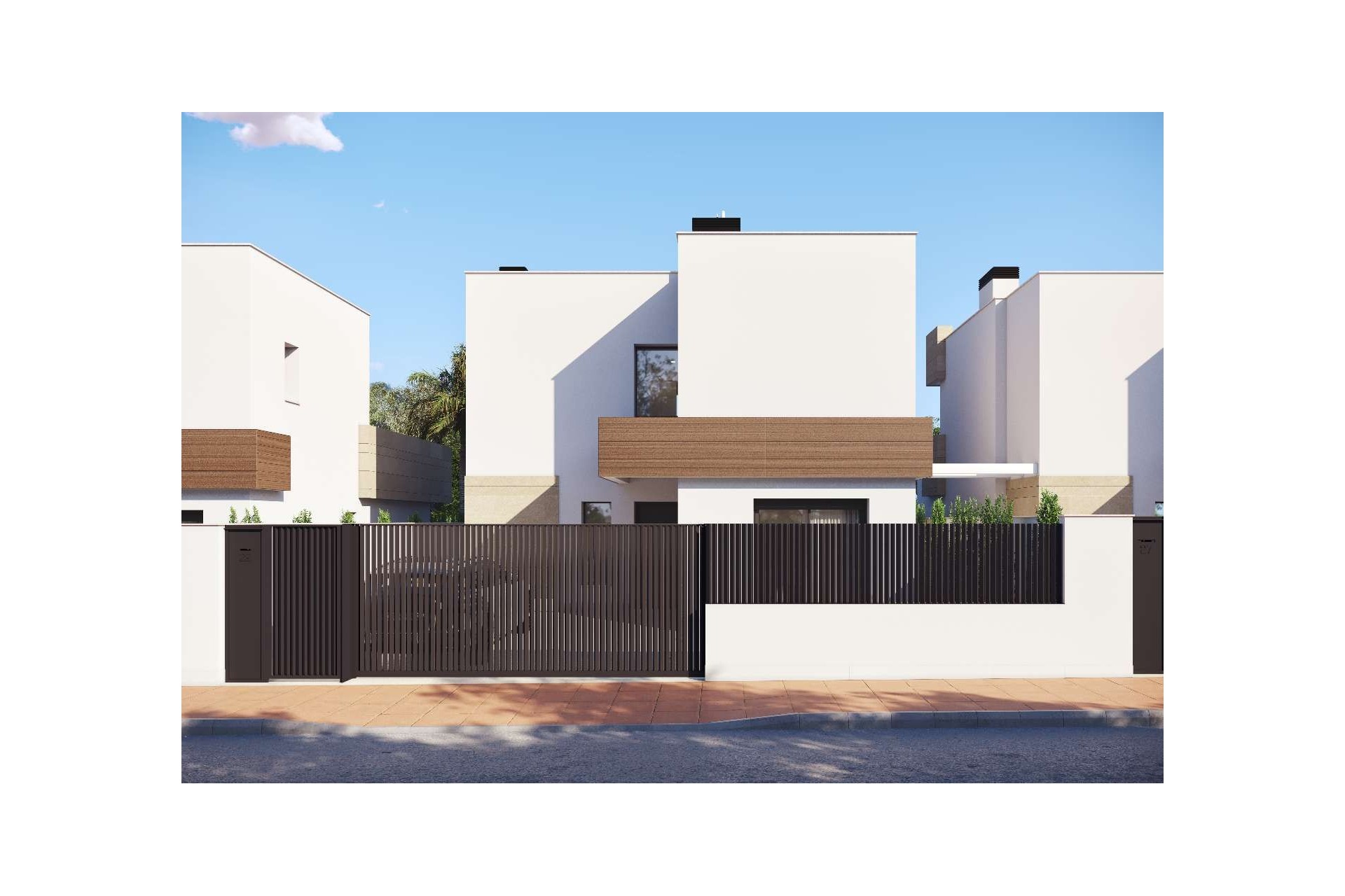 En el exterior, cada villa dispone de varias terrazas, un precioso solárium y una piscina privada, perfectos para relajarse bajo el sol español. La vivienda también cuenta con aparcamiento privado dentro de la parcela y paneles solares, lo que proporciona mayor eficiencia energética y menores costes de energía.