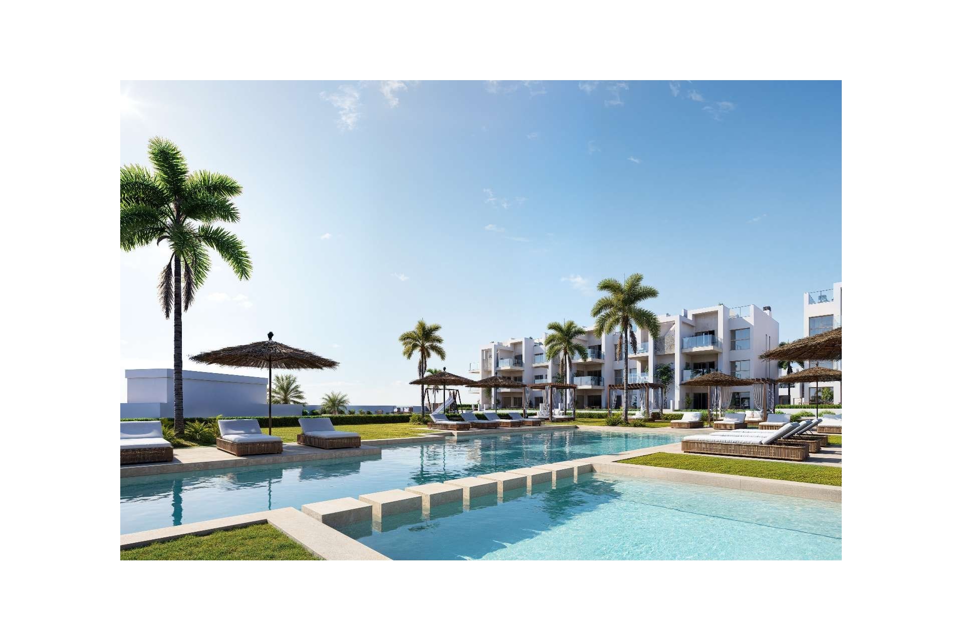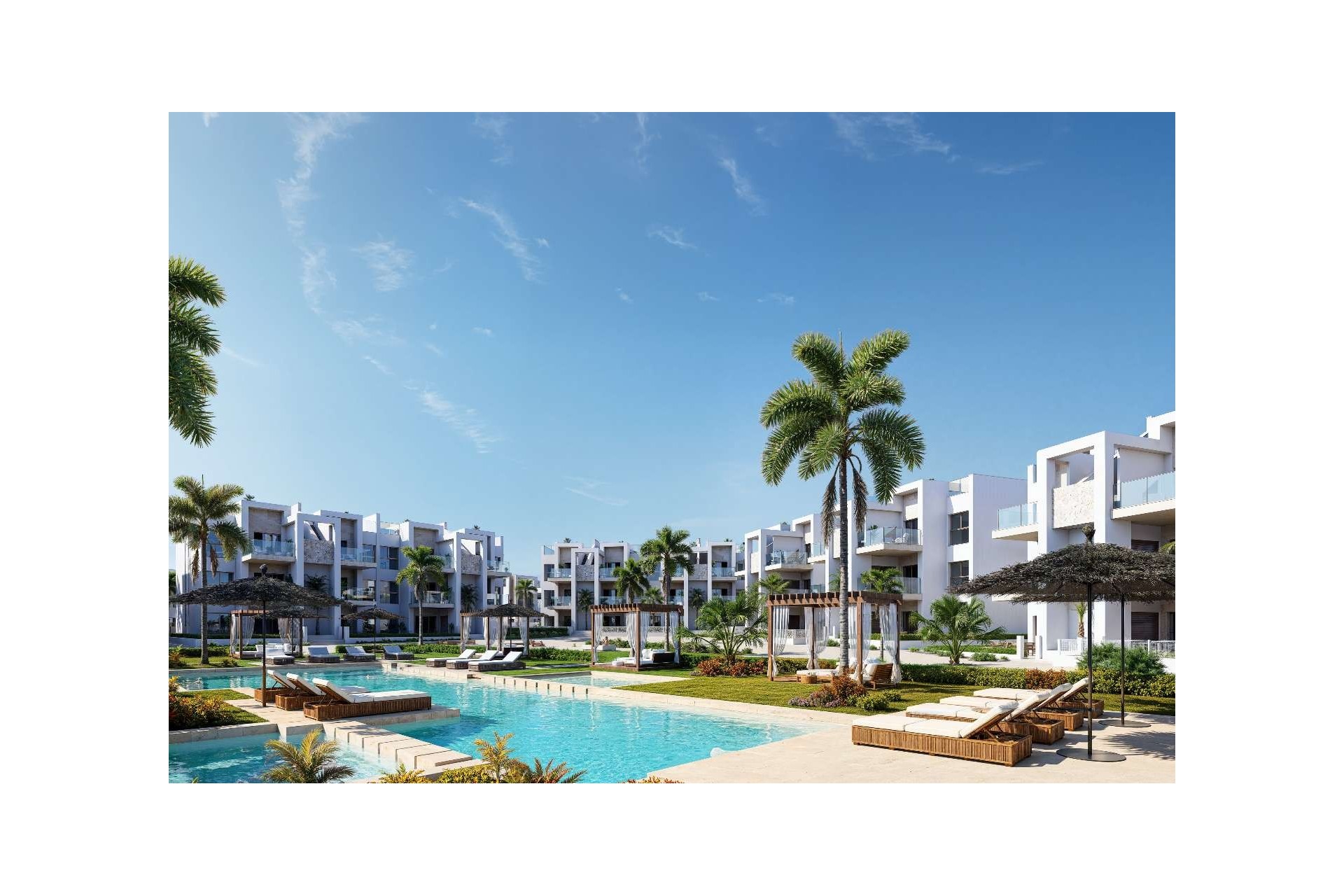 Descubre un complejo residencial moderno y elegante donde el confort, la relajación y la calidad son protagonistas. Este exclusivo proyecto ofrece una magnífica zona verde central con espacios de descanso y lujosas camas balinesas, perfectas para disfrutar del clima mediterráneo.