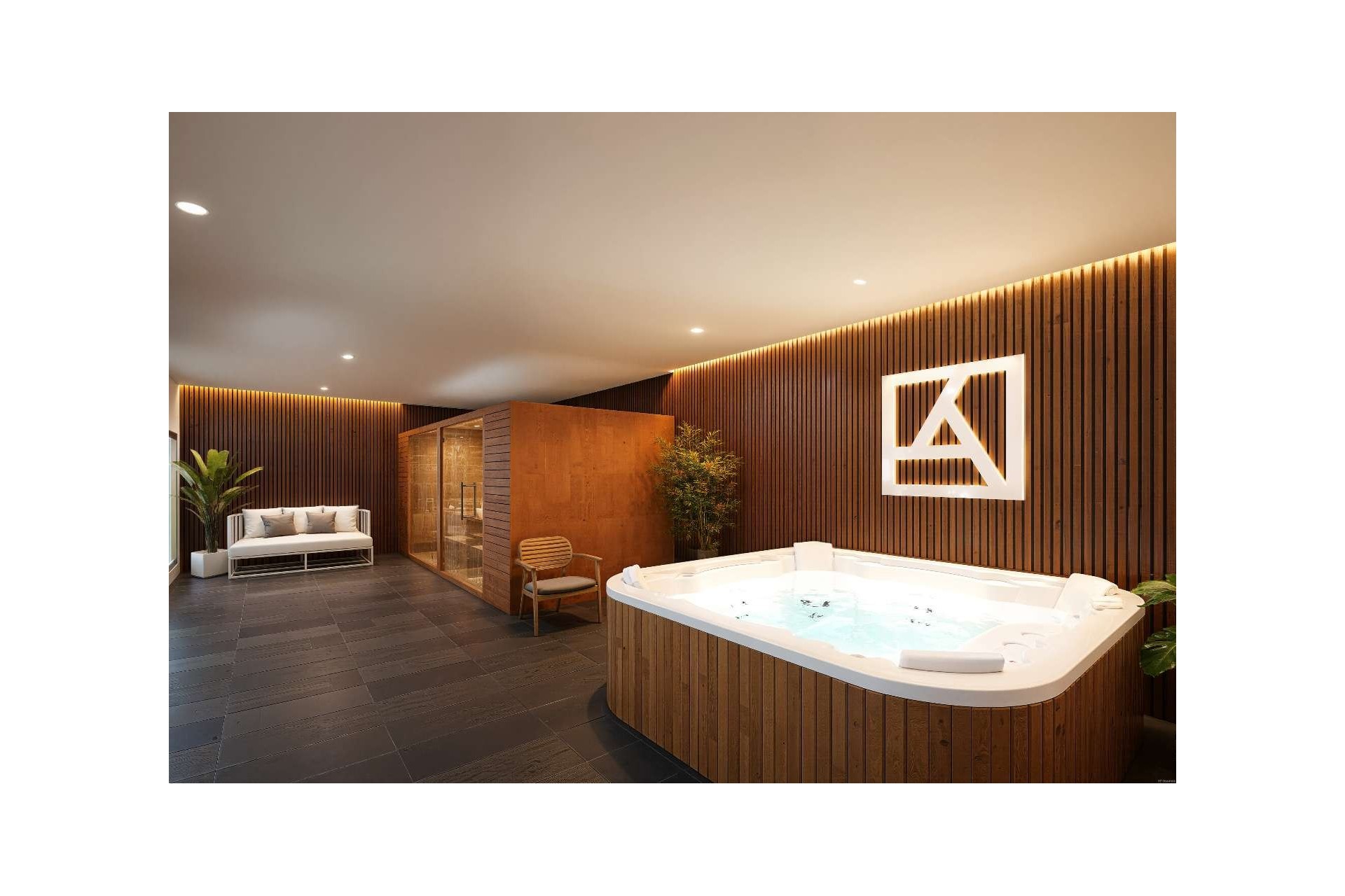 En la planta sótano se encuentra un spa completamente equipado con gimnasio y sauna, ideal para relajarse o mantenerse activo sin salir del complejo.