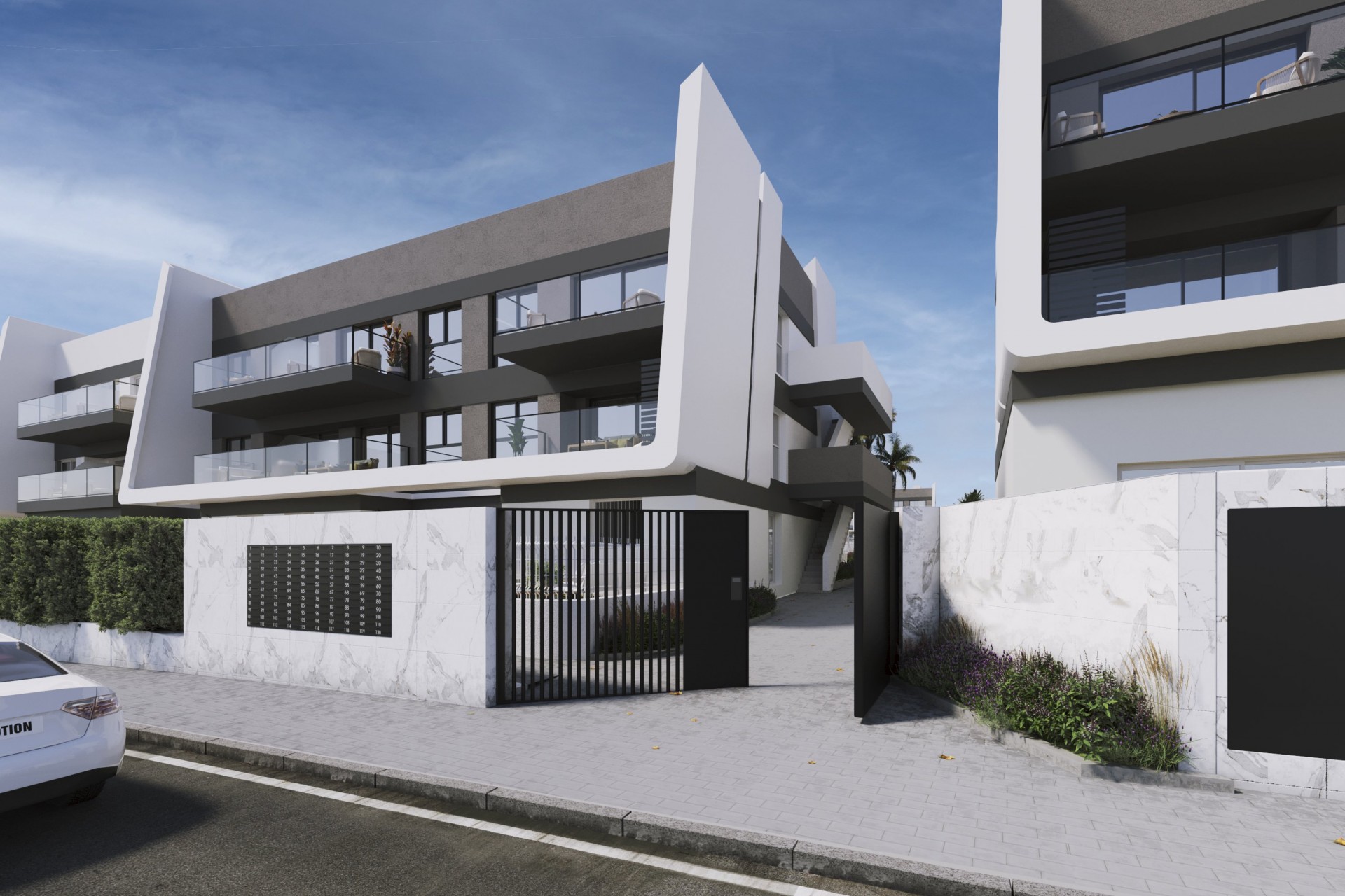 El proyecto se construirá a una altura de 100 metros, ofreciendo unas vistas excepcionales de la costa. Puedes elegir entre pisos de 2 o 3 dormitorios y 2 baños cada uno. Todos los pisos tienen una plaza de aparcamiento subterráneo y un trastero.