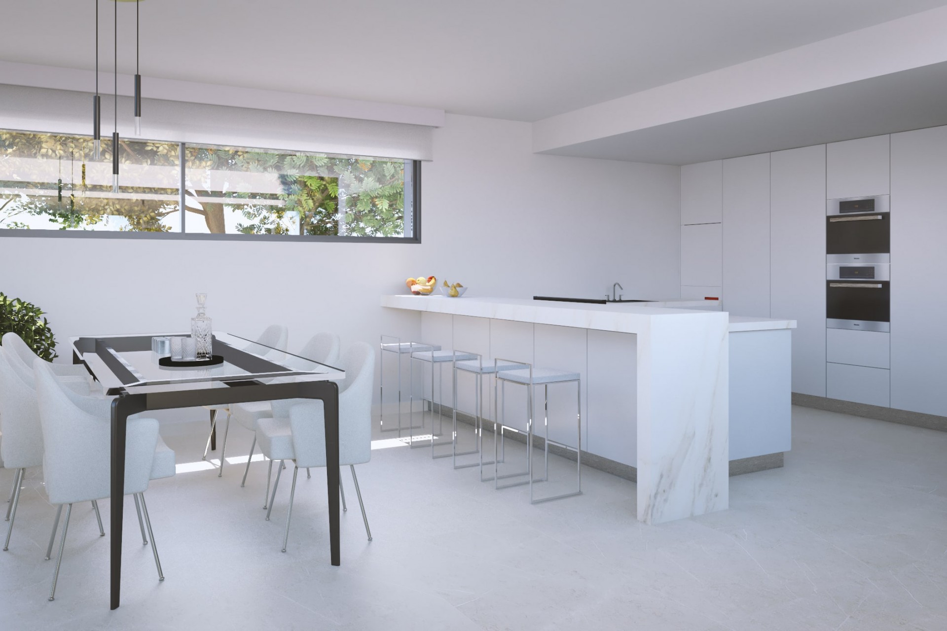 Les villas disposent de 5 chambres à coucher et 4 salles de bains. La cuisine moderne, entièrement équipée et communiqué avec la salle à manger et a un accès direct à la terrasse et au jardin. Une pièce d'architecture intelligente qui crée une harmonie entre les espaces intérieurs et extérieurs.