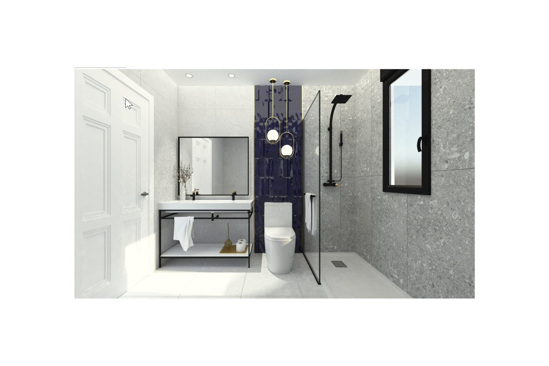 L'étage supérieur se compose d'une très grande chambre principale avec une grande armoire intégrée d'un côté et d'une salle de bain avec une grande douche et un double lavabo.