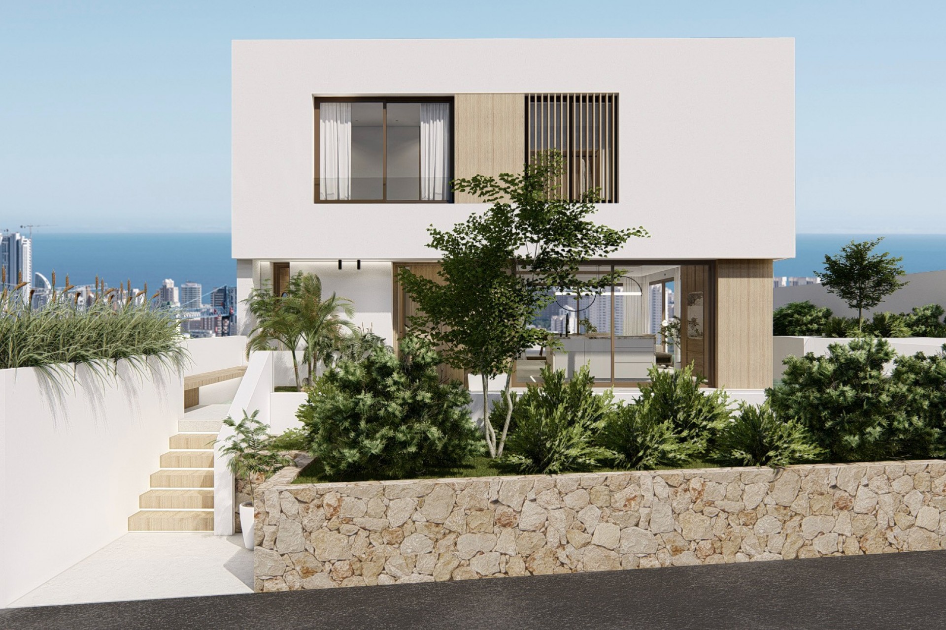La résidence de villas est située dans un quartier exclusif de Finestrat, à 3 km des plages de Benidorm et de Villajoyosa, à proximité des terrains de golf de Villaitana et de Puig Campana, et à seulement 5 minutes en voiture du centre commercial La Marina, où l'on trouve une grande variété de services.