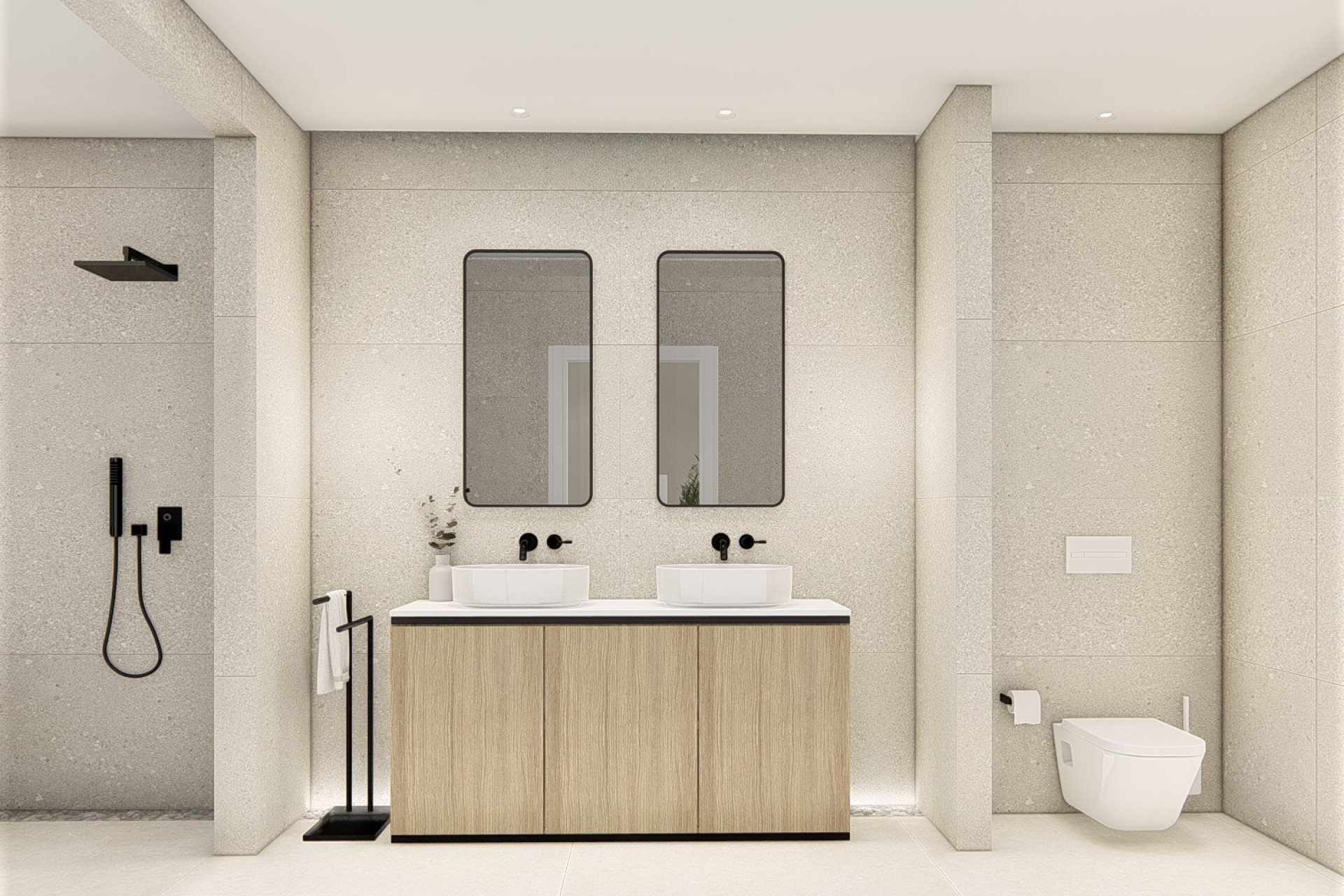 Les espaces extérieurs, avec des parcelles de 400 à 500 mètres, comprennent des terrasses spacieuses, un jardin, un garage pour deux voitures et une piscine privée pour vivre pleinement le style de vie méditerranéen en profitant du soleil, de la lumière et de la nature.