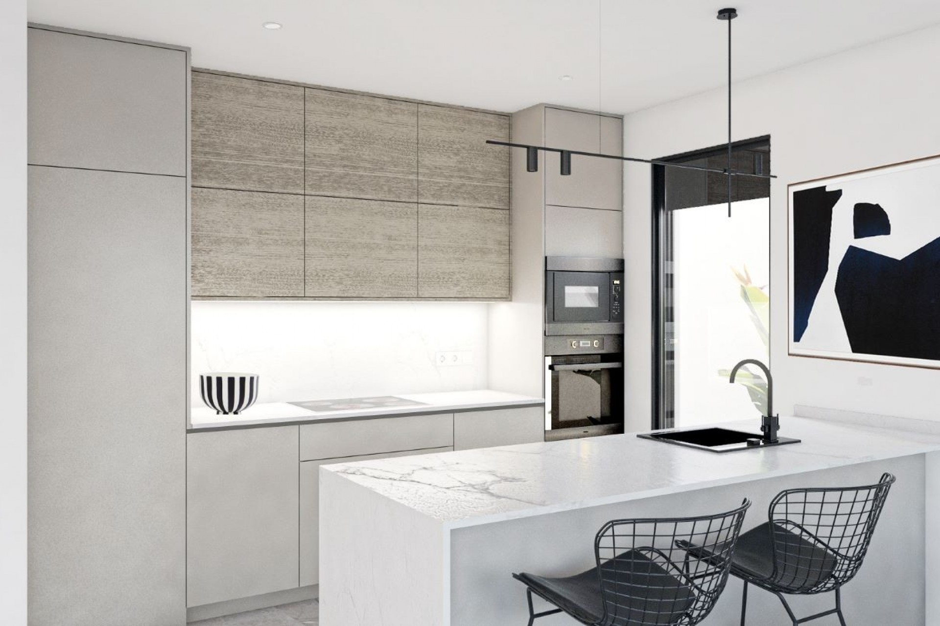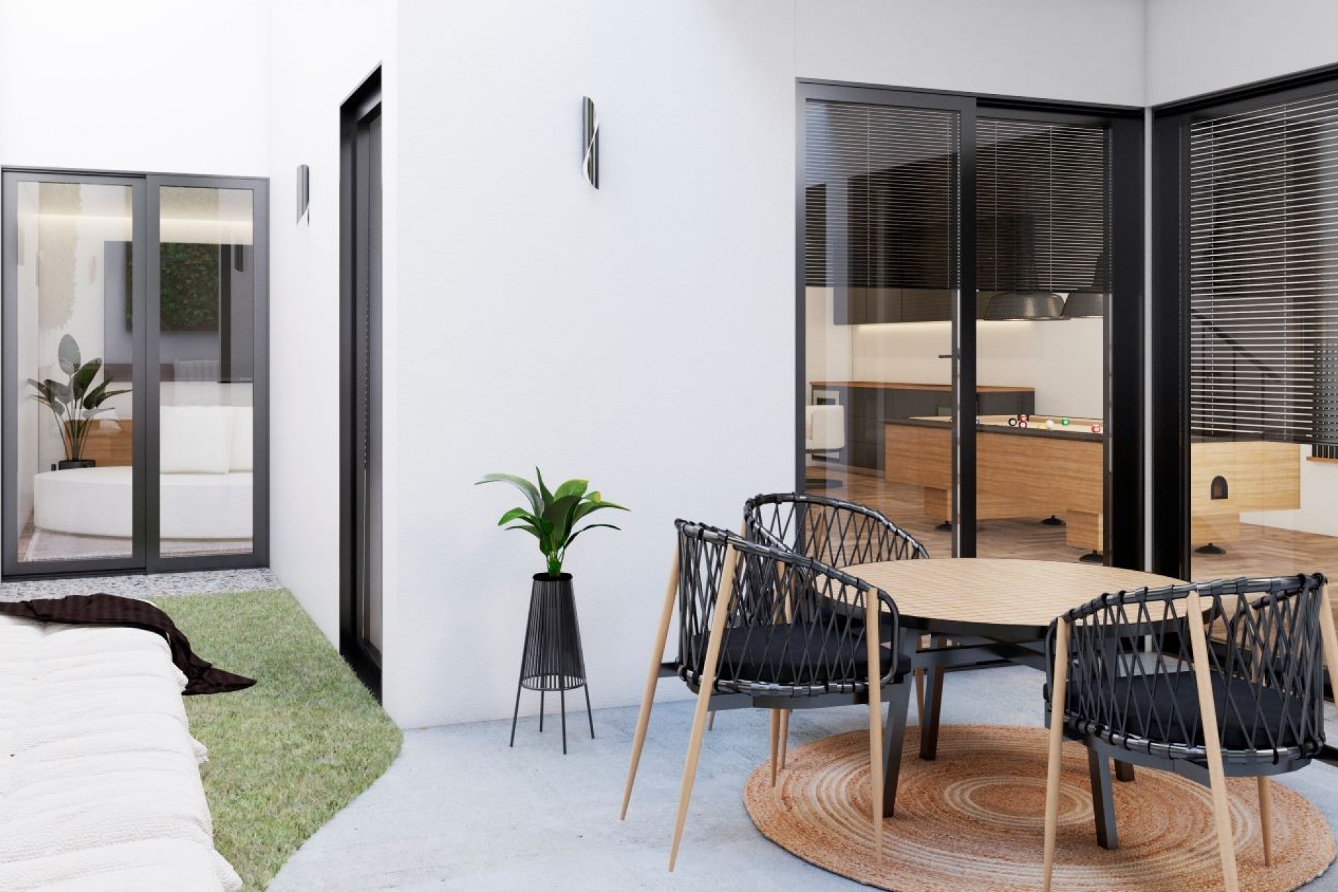 Villas de luxe modernes et lumineuses intégrées au complexe, avec 3 chambres, 4 salles de bains, piscine privée avec jacuzzi, solarium et sous-sol avec patio anglais.