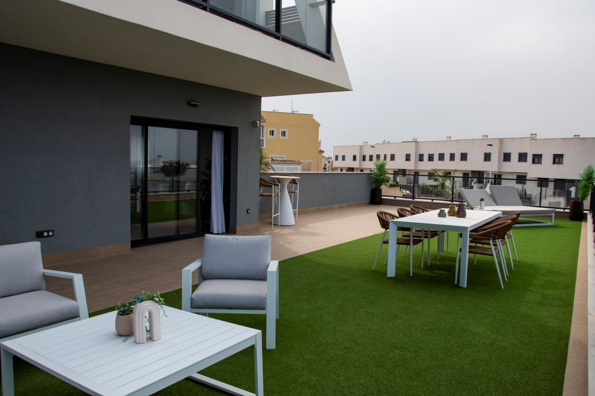 Ce nouveau complexe moderne est situé à quelques minutes de marche de la magnifique plage de Carabassi, à Gran Alacant. Tous les appartements sont d'excellente qualité. Le complexe dispose d'une piscine centrale, de beaux jardins, d'une aire de jeux pour enfants et d'un parcours de bio-training pour tous les âges. Cet appartement au rez-de-chaussée dispose de 2 très confortables chambres et de 2 salles de bains. La cuisine ouverte est reliée au salon spacieux qui donne sur la grande terrasse et son propre jardin privé. Ces appartements donnent sur le jardin commun et chacun dispose de son propre parking souterrain avec débarras. Ce complexe est situé à 10 minutes en voiture du centre d'Alicante et à 5 minutes de l'aéroport.