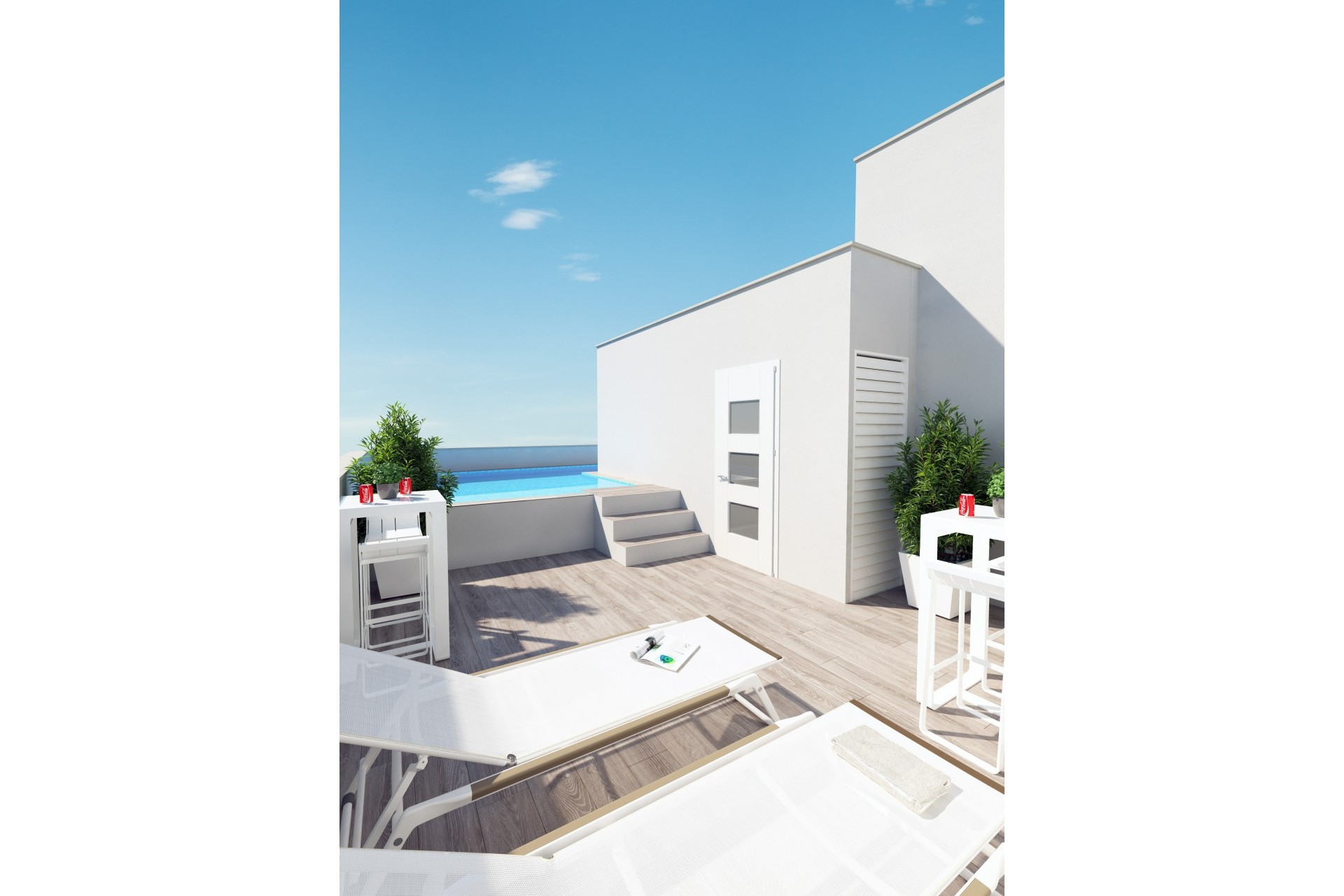 Les appartements se composent de 1 ou 2 chambres, 1 salle de bain, une cuisine moderne et un salon/salle à manger ouvert avec accès à la terrasse. Les penthouses disposent d'une grande terrasse d'où vous pourrez profiter du soleil méditerranéen. Sur le toit, vous pourrez profiter de la piscine commune avec un solarium.