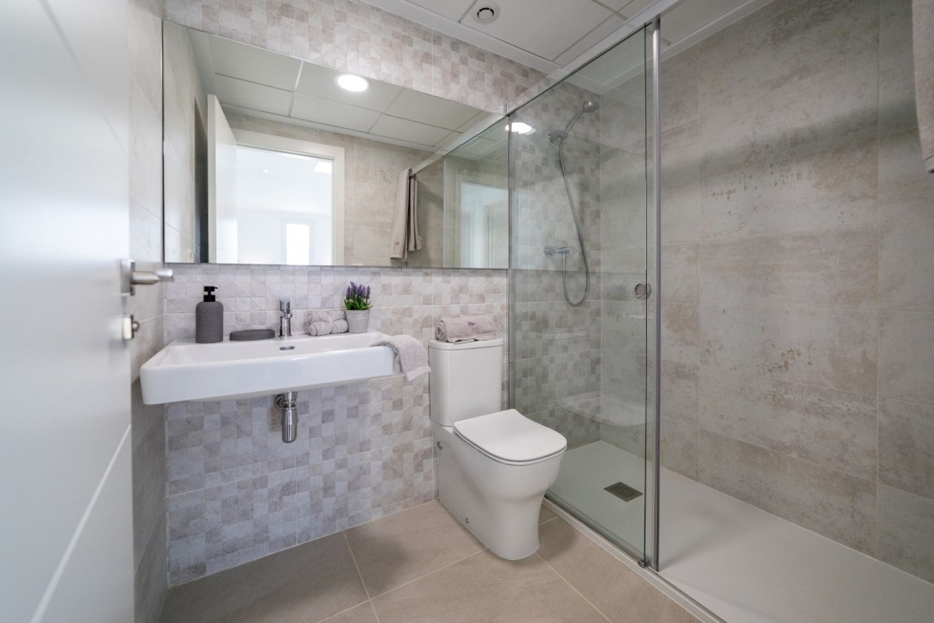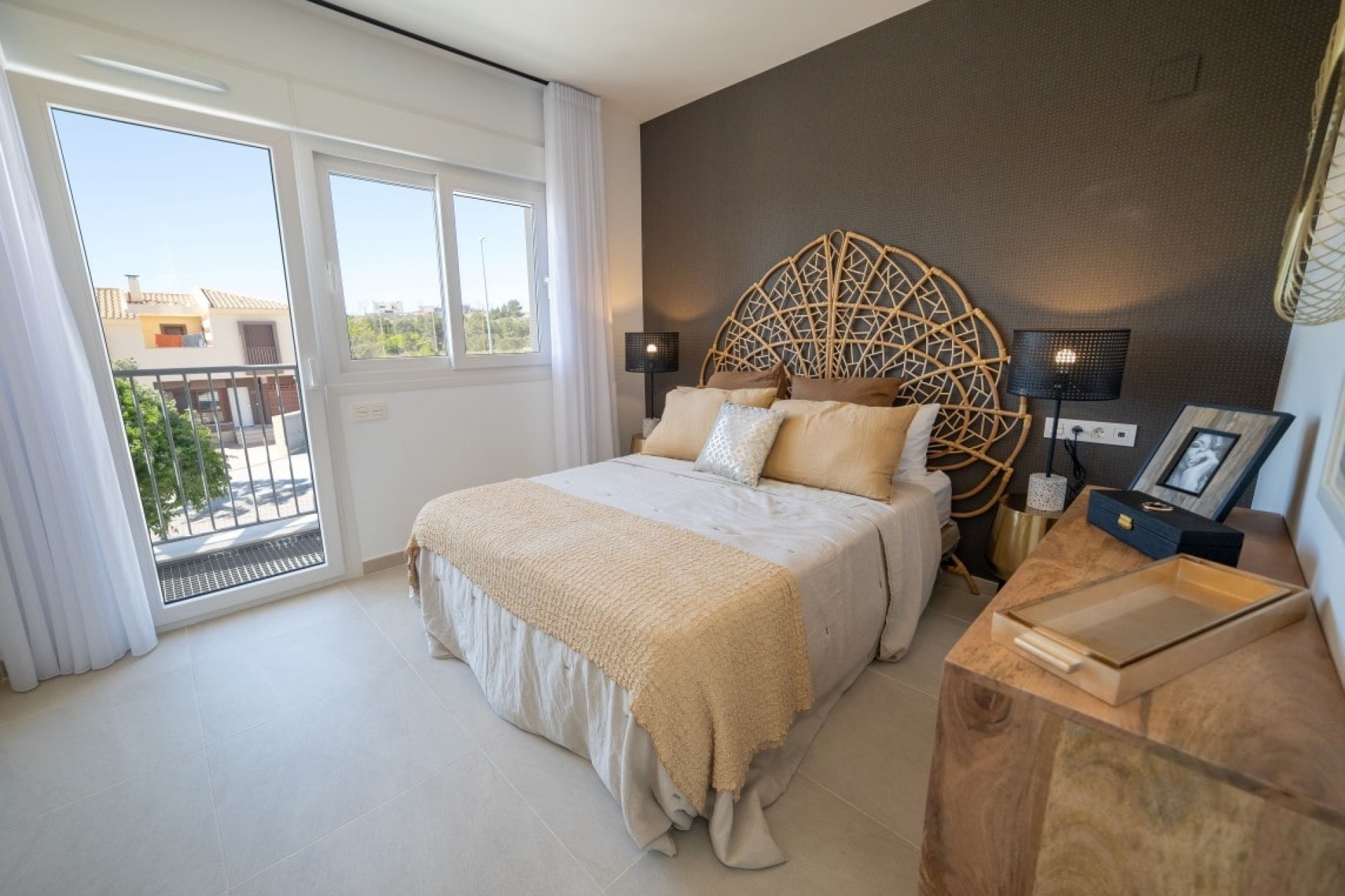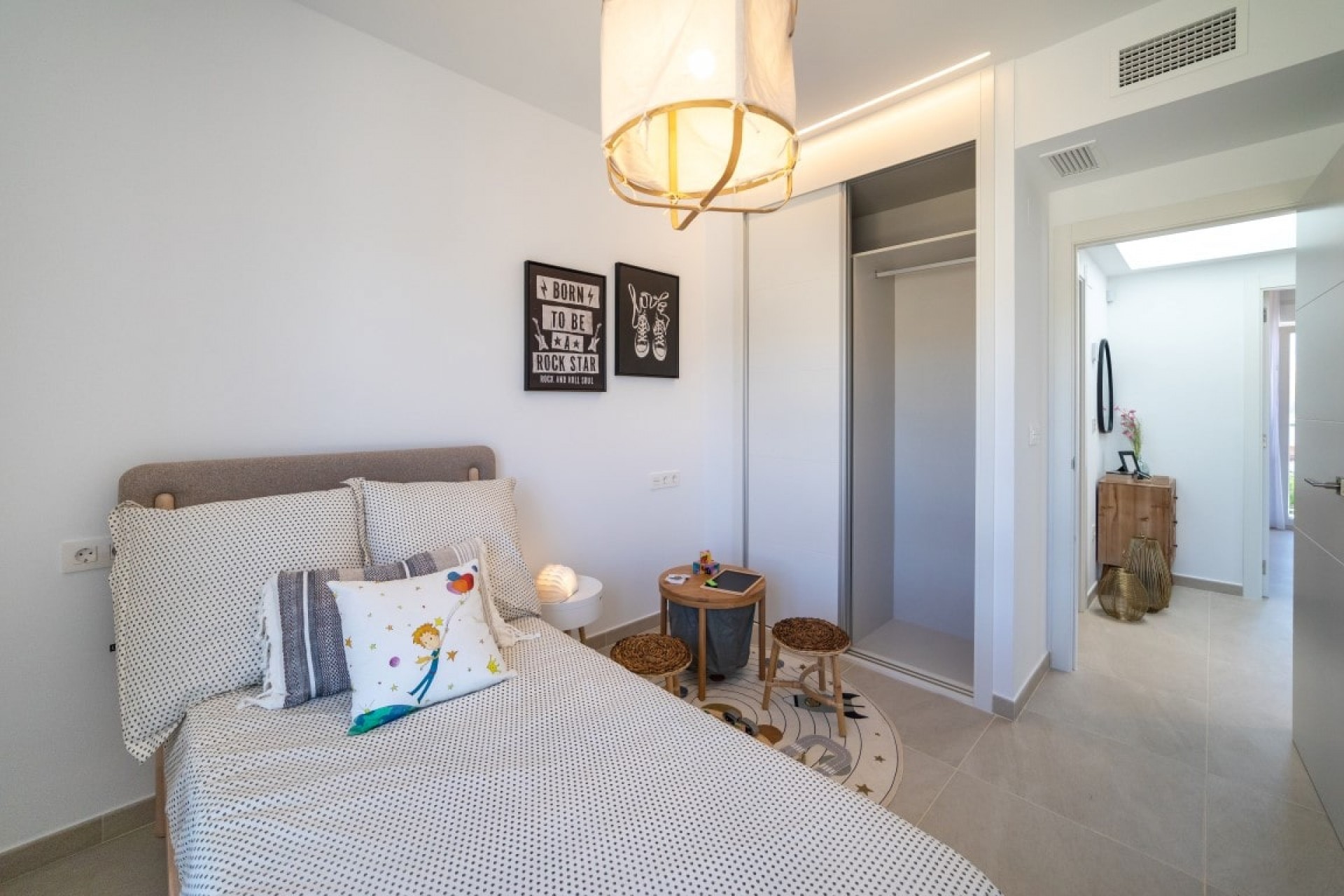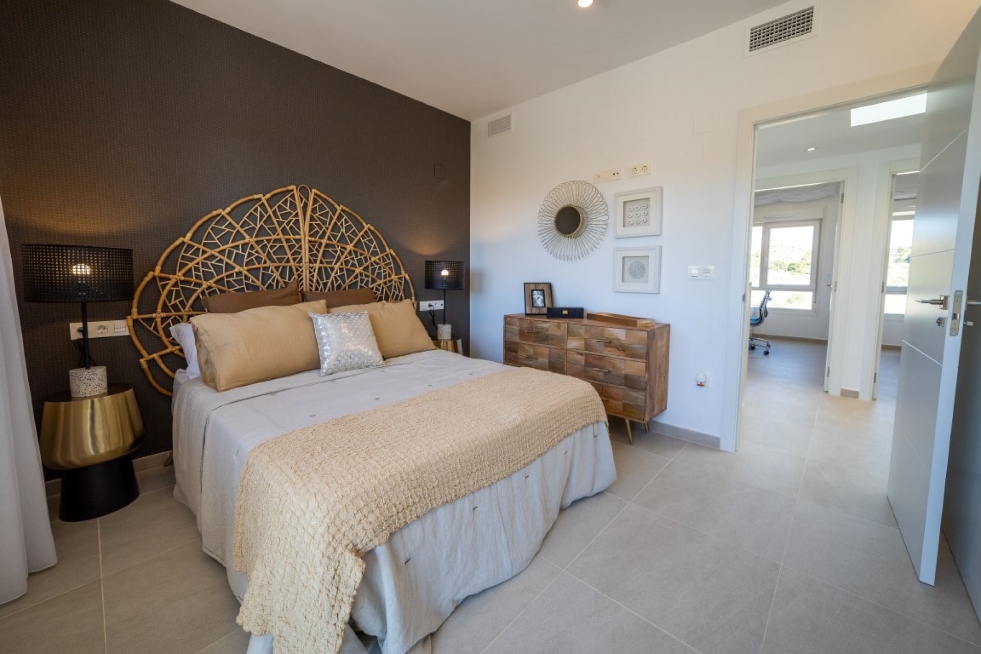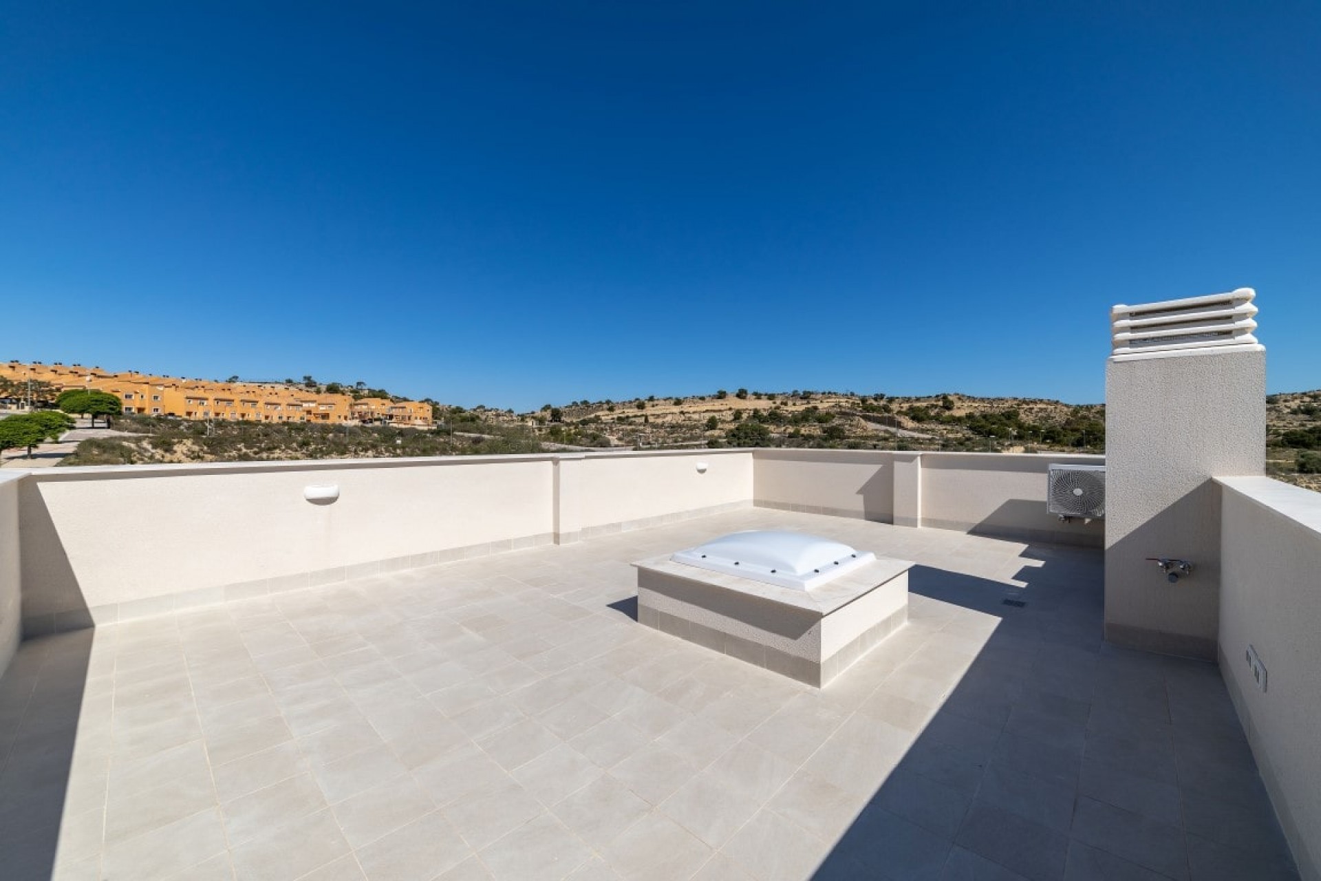 Deze woning heeft 3 ruime slaapkamers, allemaal met inbouwkasten, een eigen badkamer in de hoofdslaapkamer met een eigen toegang tot het dakterras. Daarnaast een andere grote privébadkamer, een gastentoilet, een berging en een wasruimte. Het airconditioning systeem (warm en koude lucht) is voorzien in alle vertrekken die werkt door zonnepanelen op het dak en er is een individuele pre-installatie op gas geplaatst met radiators.
