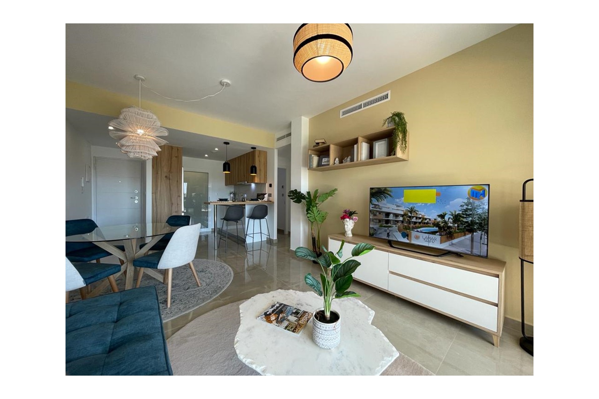 Nieuw kleinschalig project met slechts 34 appartementen verdeeld over 3 blokken, gemeenschappelijk zwembad met ligweide, jacuzzi, gym, speeltuin en garage met bergruimte.