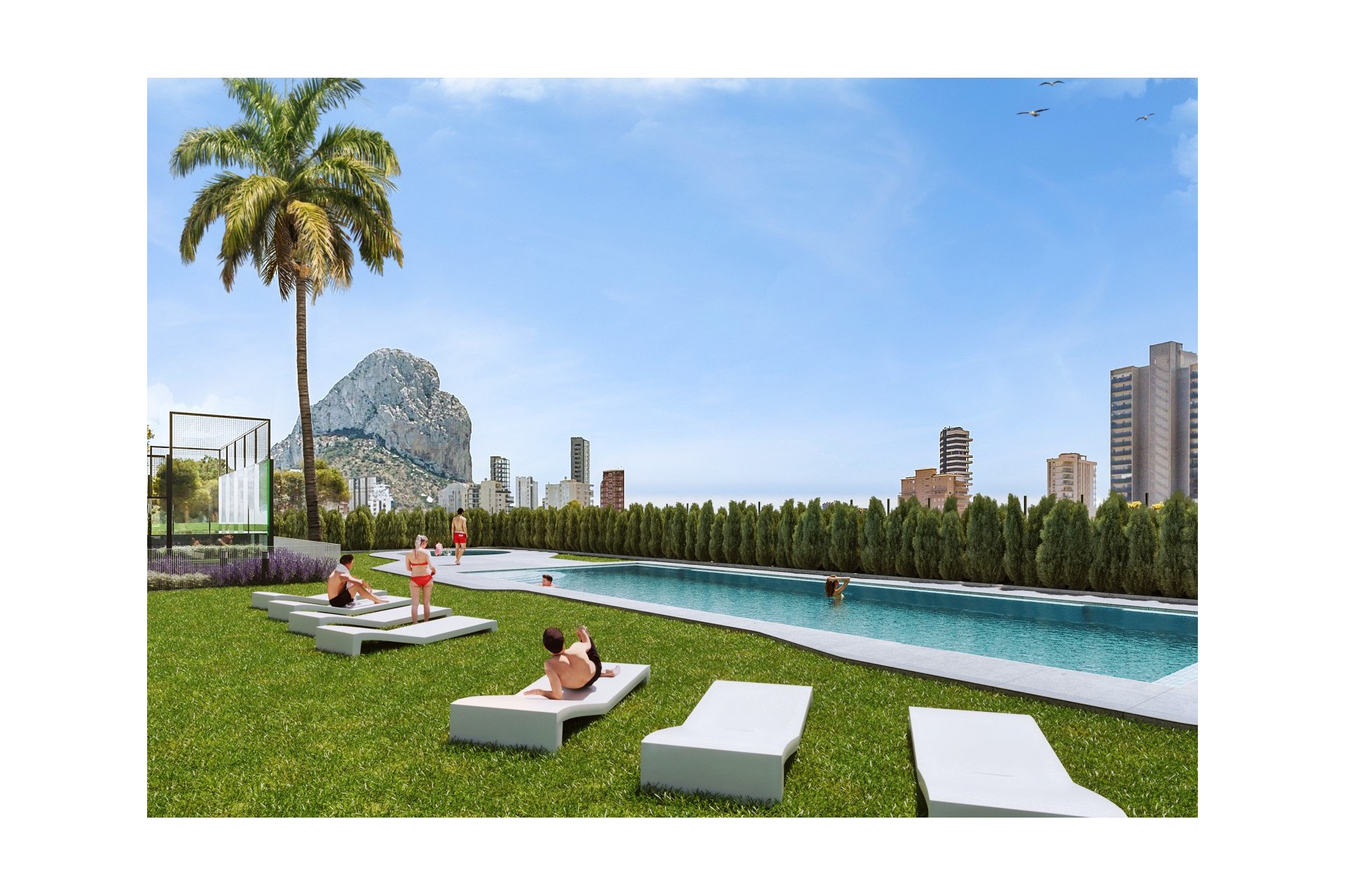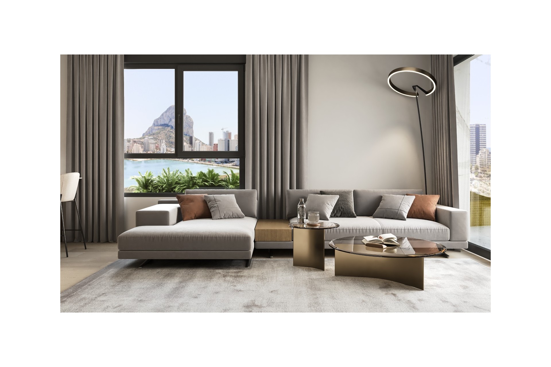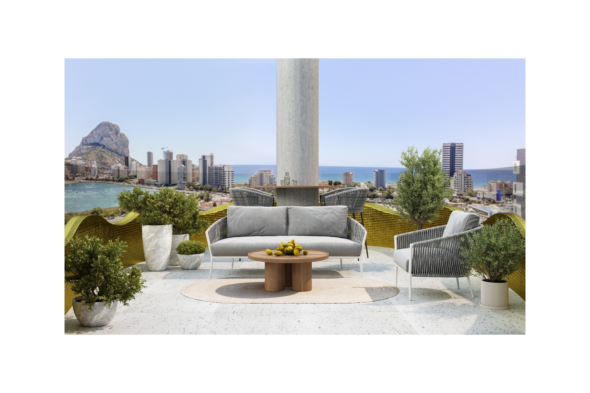 De appartementen met uitzonderlijke, moderne architectuur beschikken steeds over 3 slaapkamers, 2 badkamers, woonkamer met open keuken en directe toegang tot een groot terras. Vanaf dit terras kan u genieten van het spectaculaire uitzicht op Calpe en de Middellandse zee.