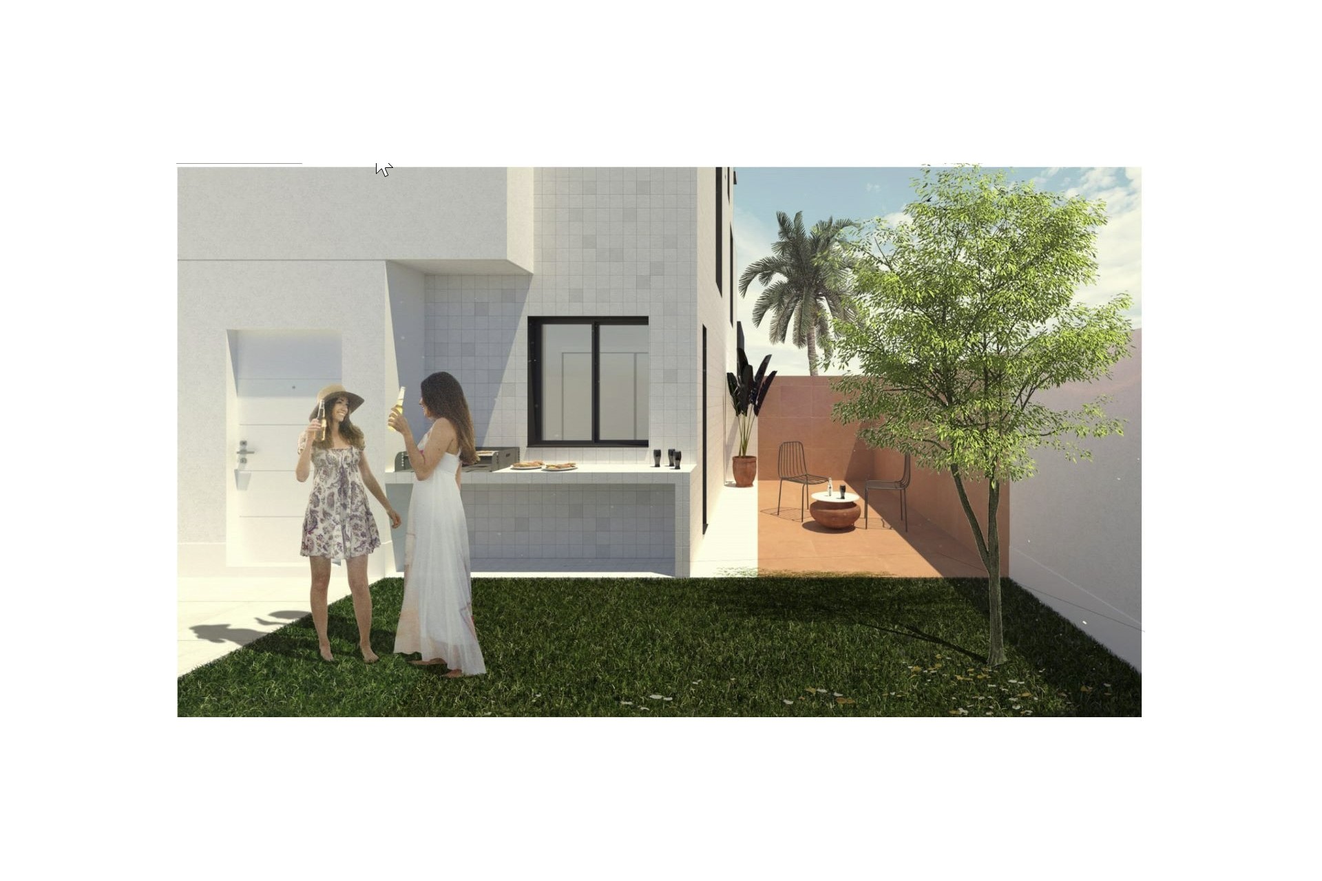 Het project bestaat uit 3 unieke woningen met alle comfort en een modern interieur. Deze woning omvat op het gelijkvloers een inkomhal, een woonkamer met open keuken, een slaapkamer met aansluitend een wasruimte en een badkamer. De bovenverdieping bestaat uit een grote ouderslaapkamer met een inbouwkast en een badkamer met douche en dubbele wastafel. Via de buitentrap bereikt u een prachtig solarium, een plaats waar u kunt ontspannen onder de mediterrane zon of kunt genieten van de jacuzzi in het gezelschap van familie en vrienden.