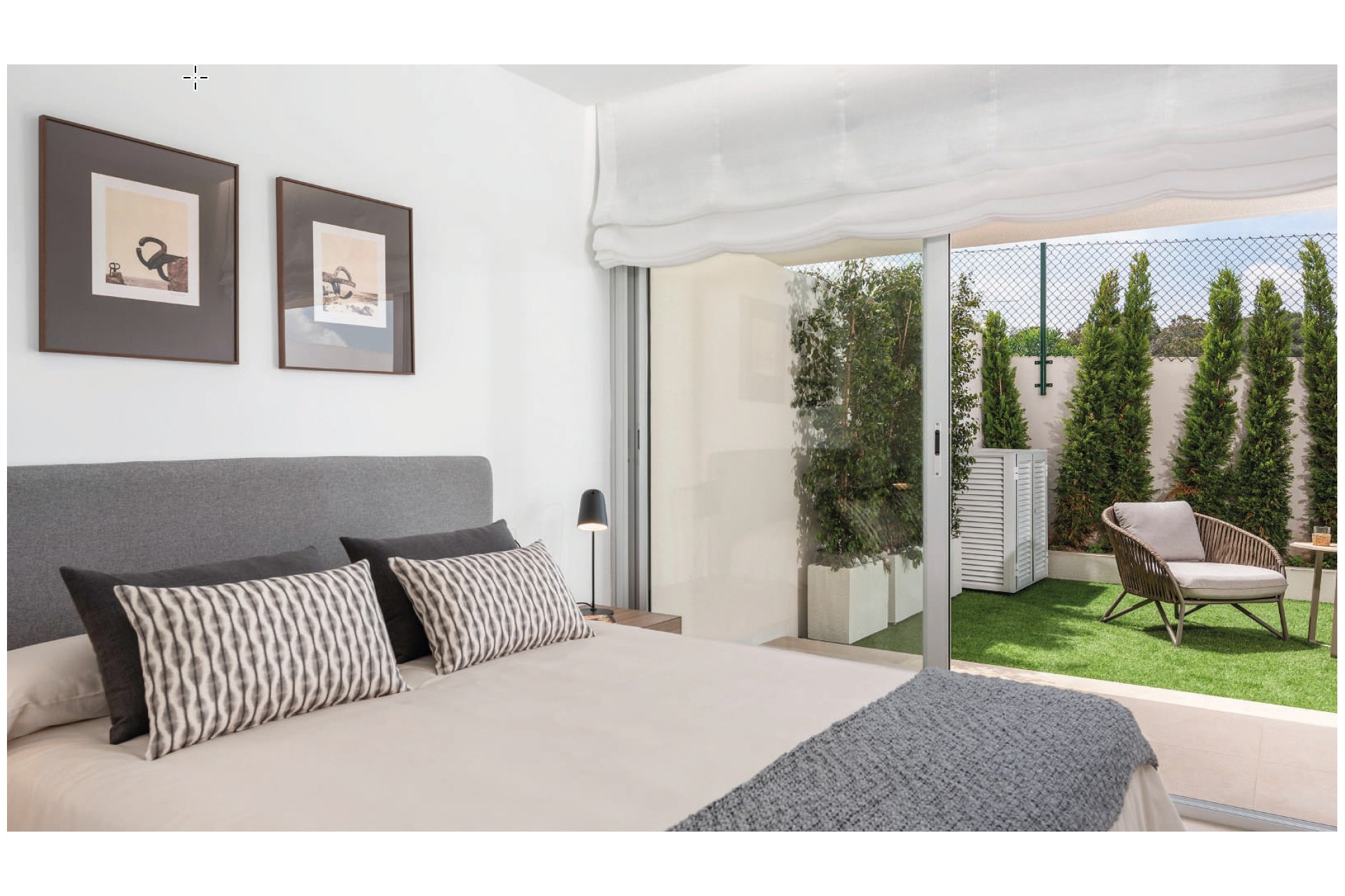 Appartementen op twee niveaus, allemaal met 2 slaapkamers en 2 badkamers, met de keuze tussen begane grond met terras en privétuin of eerste verdieping met terras en solarium.