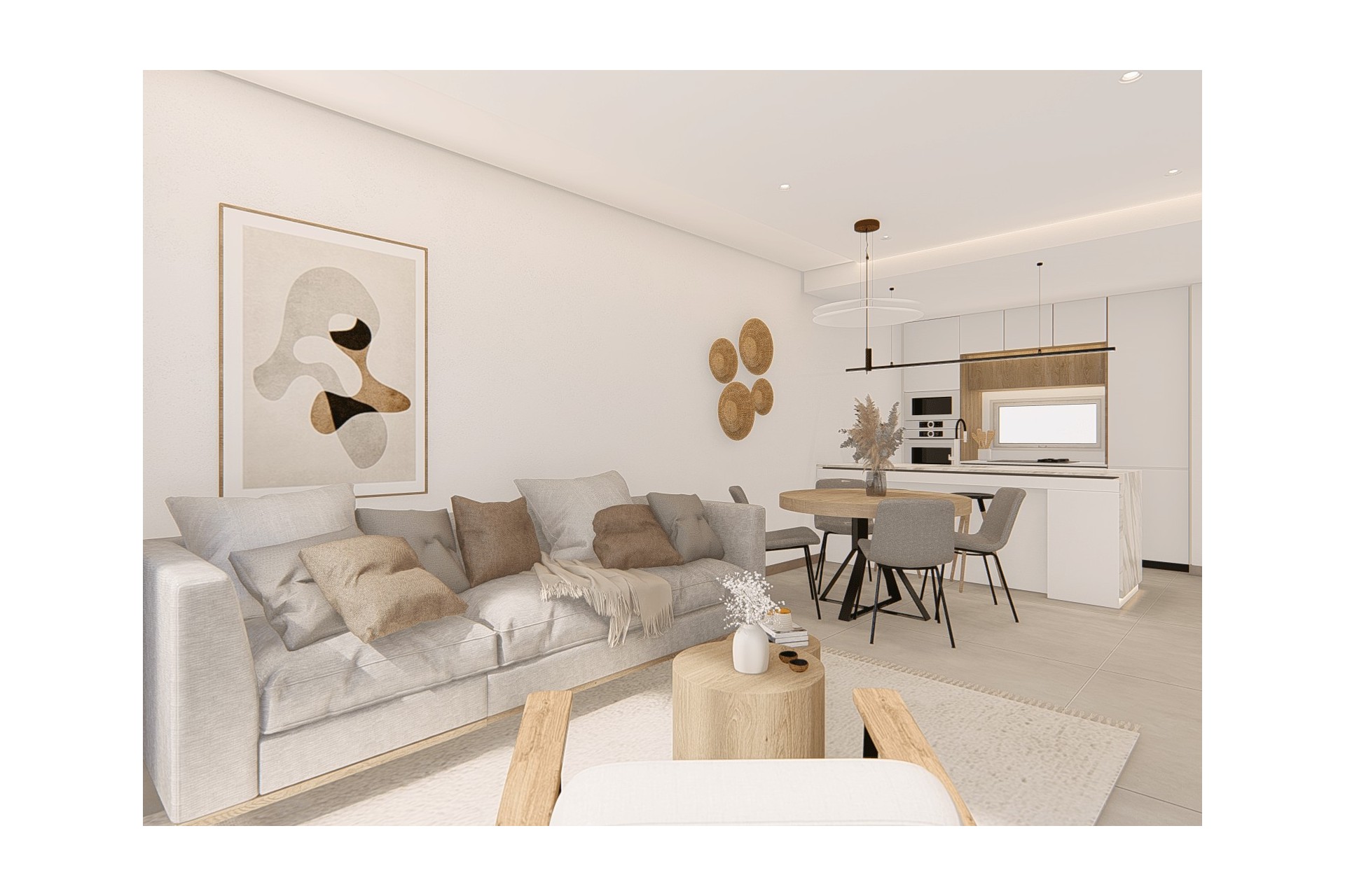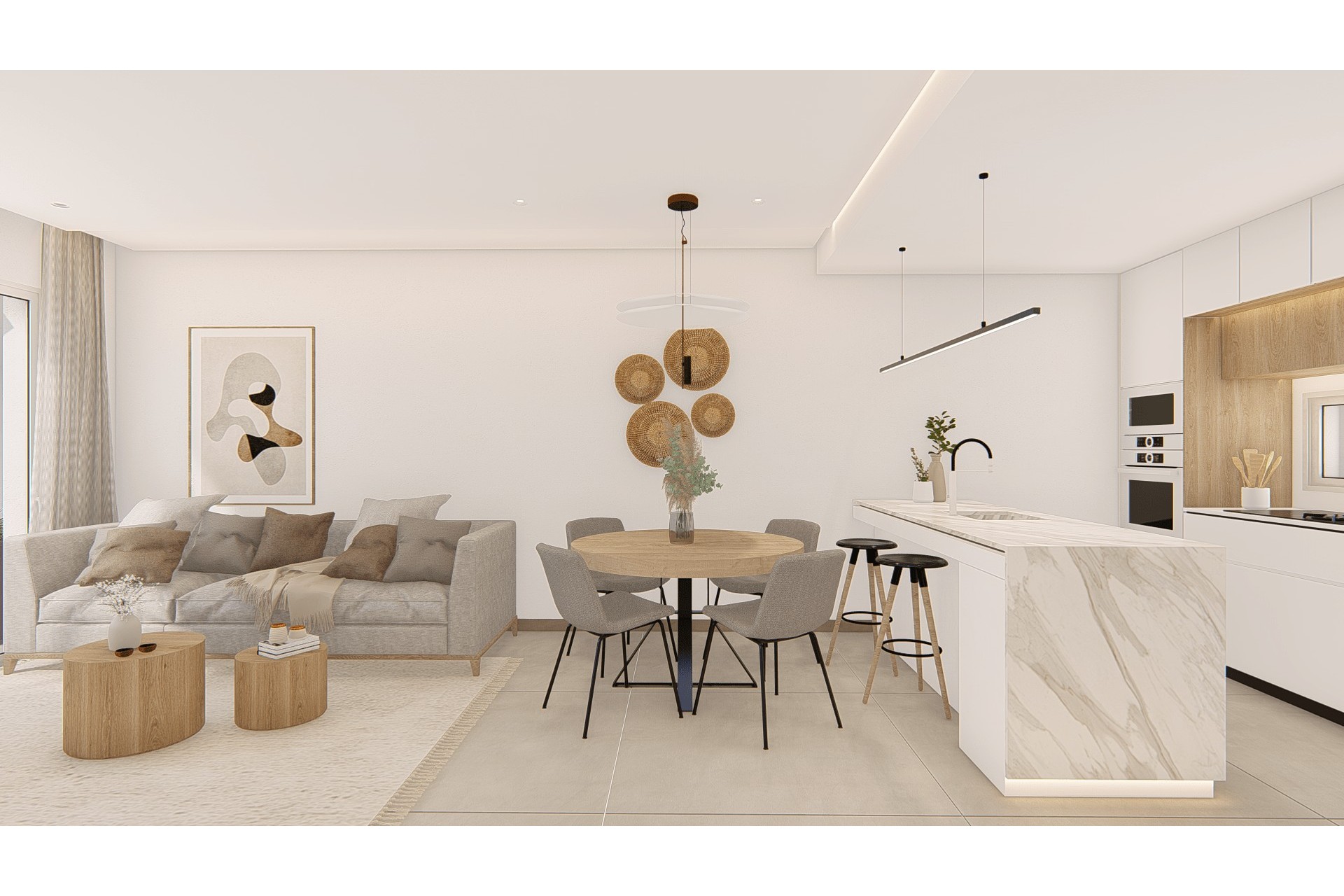 De appartementen omvatten steeds 2 slaapkamers en 2 badkamers, woonkamer met open keuken en aansluitend terras. U heeft zicht op de gemeenschappelijke tuin en / of het gemeenschappelijk zwembad.