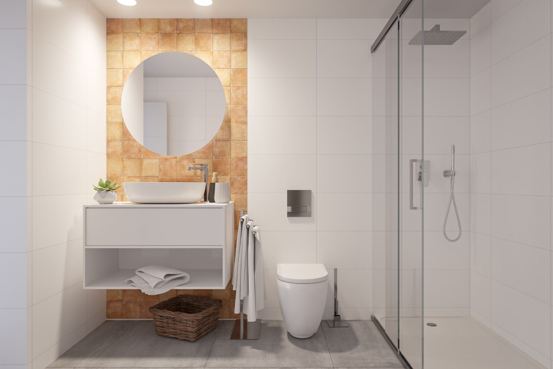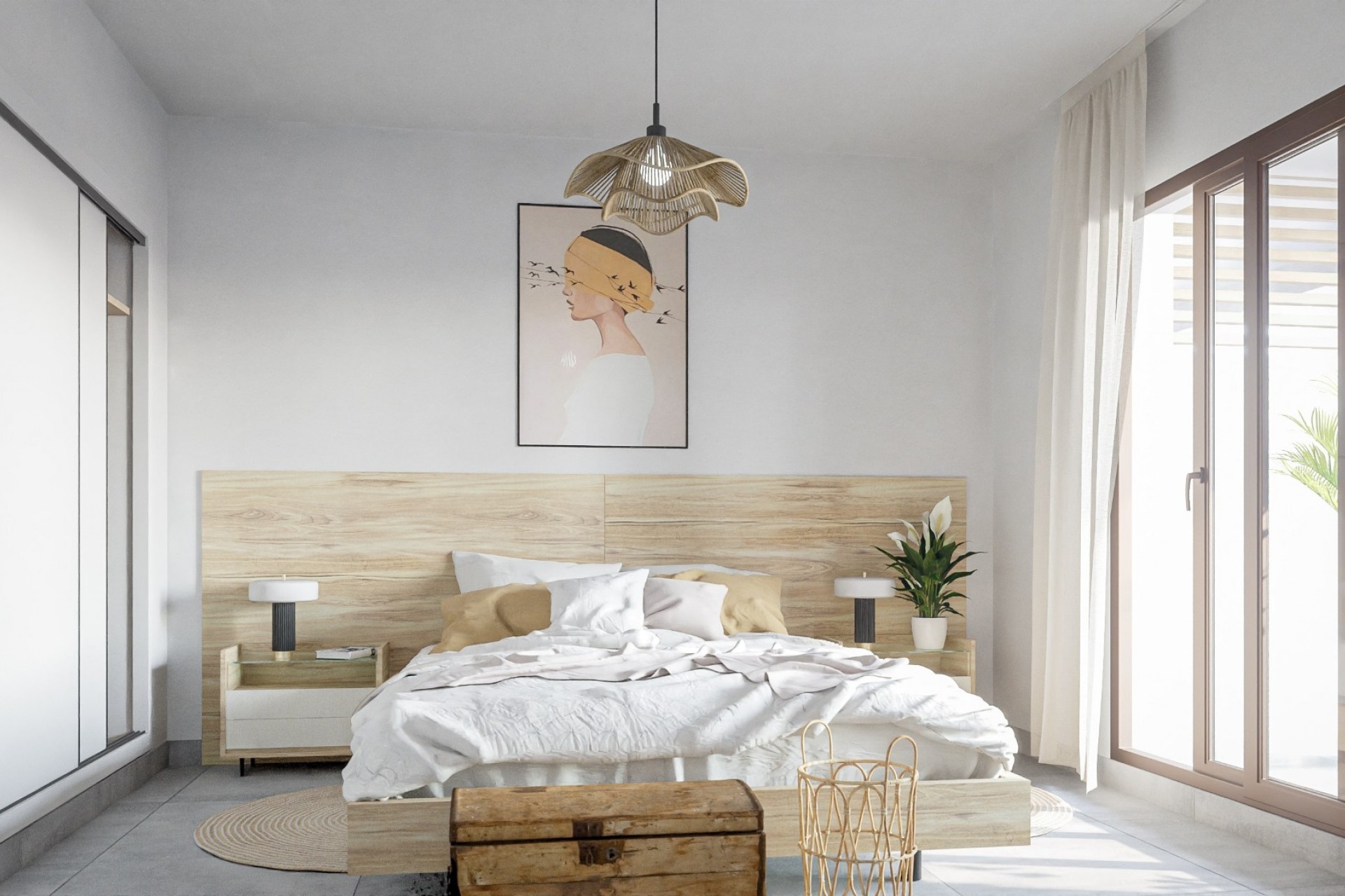 Appartementen met 2 slaapkamers en 2 badkamers, verdeeld over begane grond met privétuin, eerste verdieping met terras en penthouses met solarium, meestal met parkeerplaats en berging in de prijs begrepen.