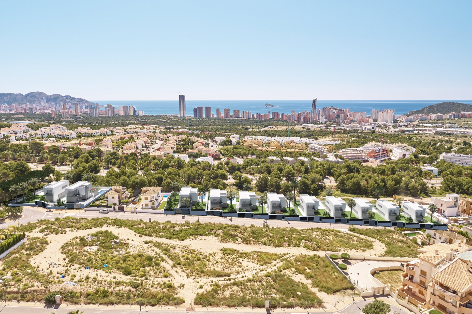 Op een boogscheut van de stranden van Benidorm in een rustige omgeving worden deze moderne villa’s gebouwd.