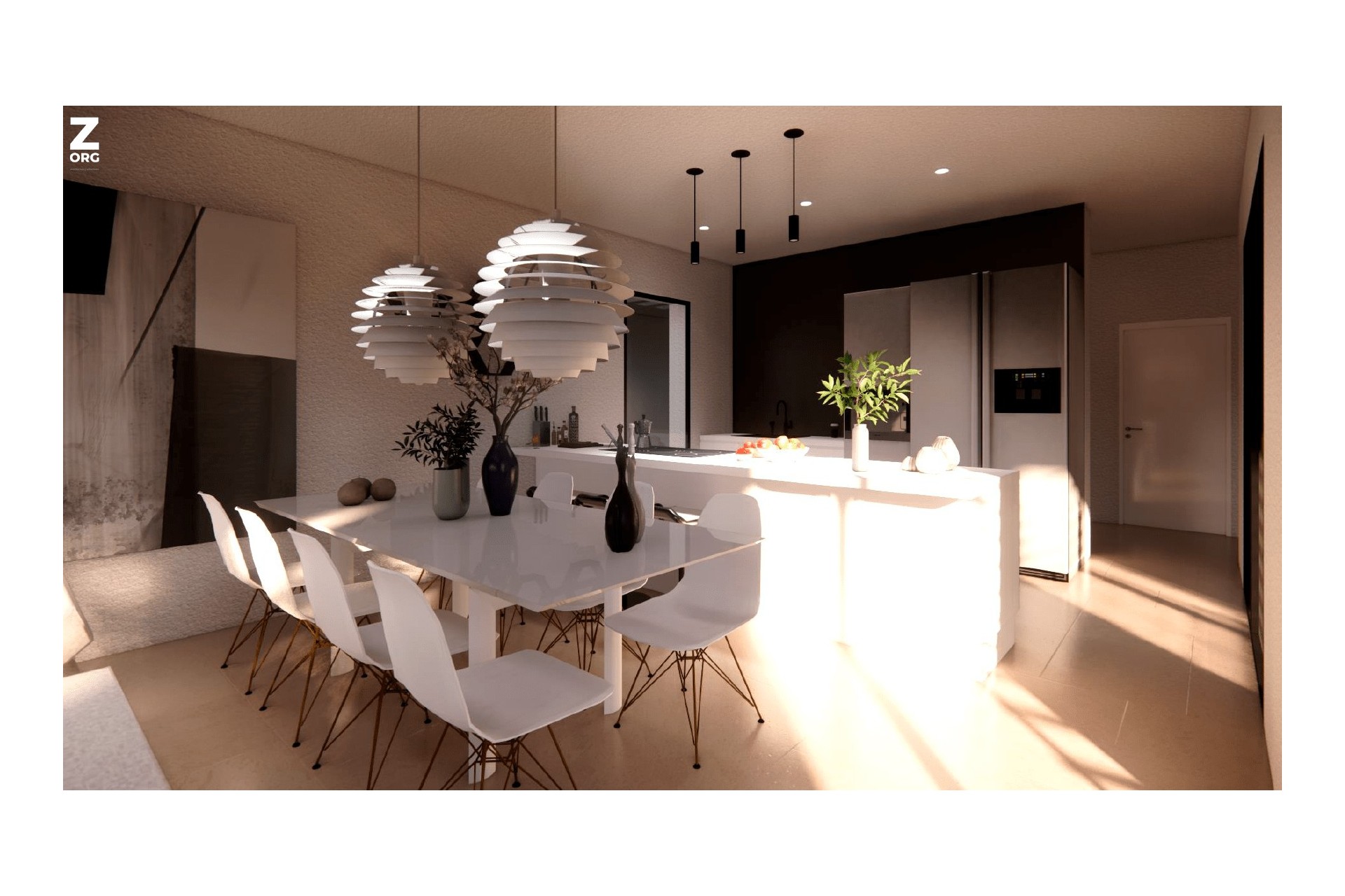 Luxe complex van 4 villa's met privézwembad op percelen van ca 400 m², open ruimtes en een groot solarium met zomerkeuken in elke woning. De villa's hebben 3 slaapkamers en 3 badkamers en zijn ontworpen in een eigentijdse stijl en met een open concept, bestaande uit een volledig ingerichte keuken en woon-eetkamer.