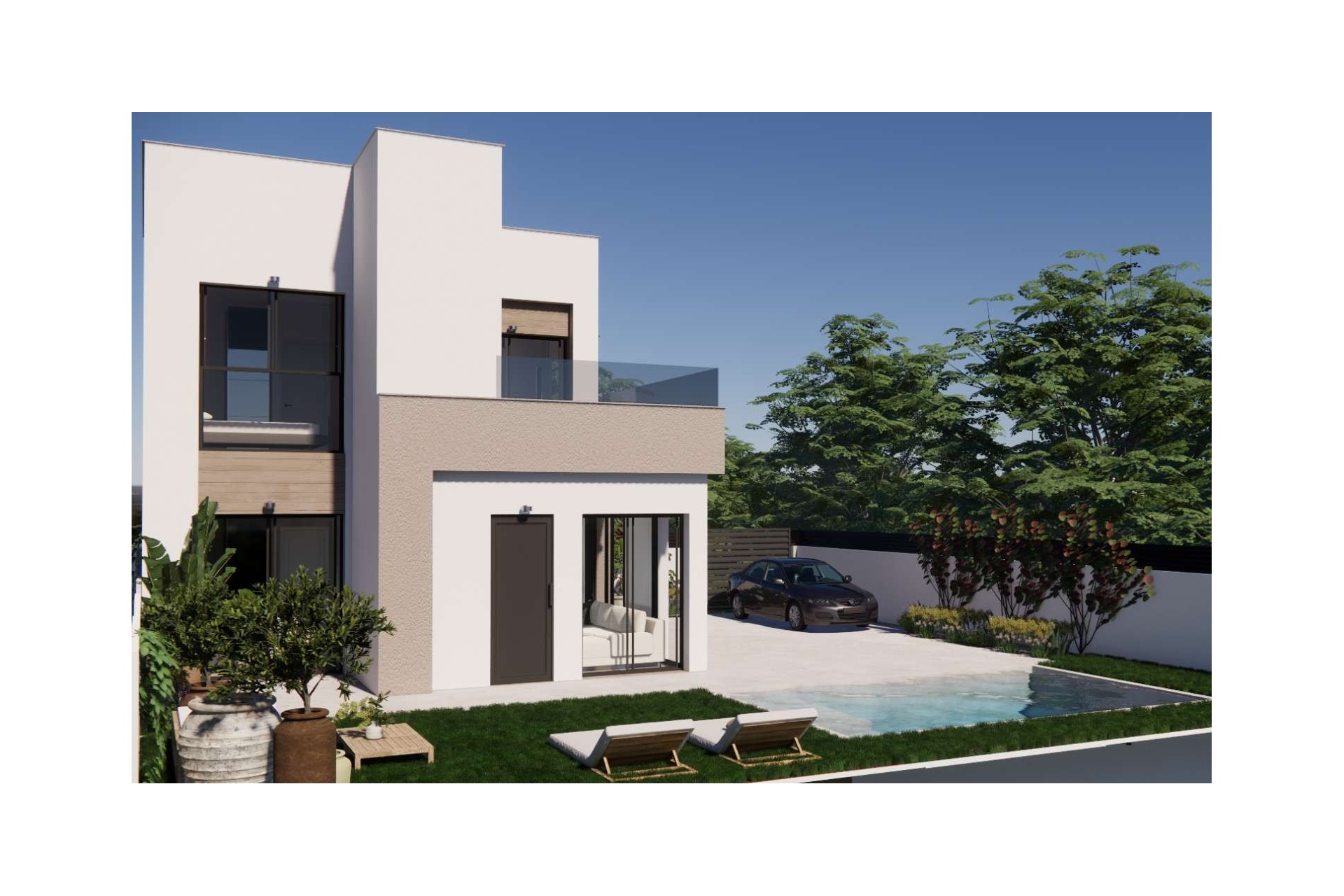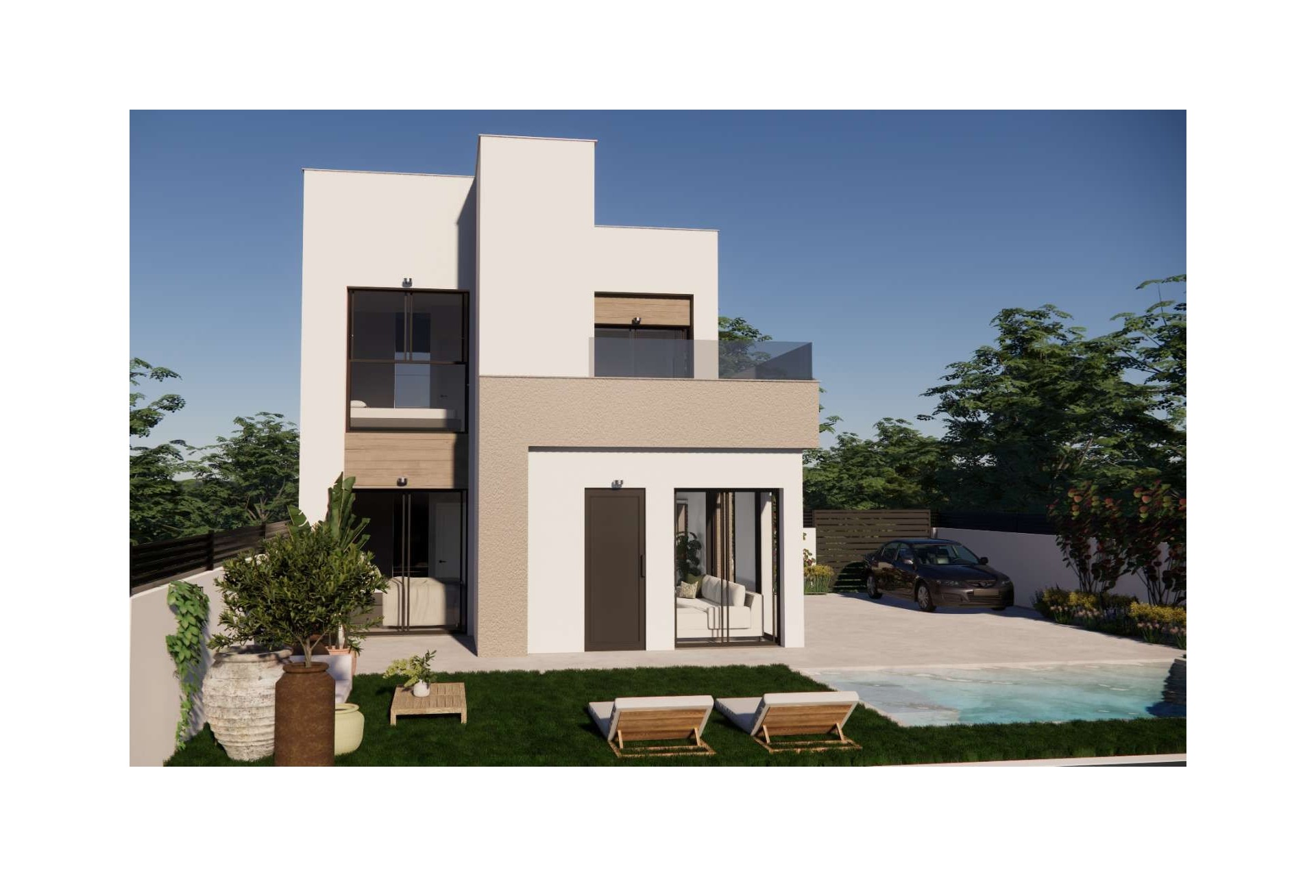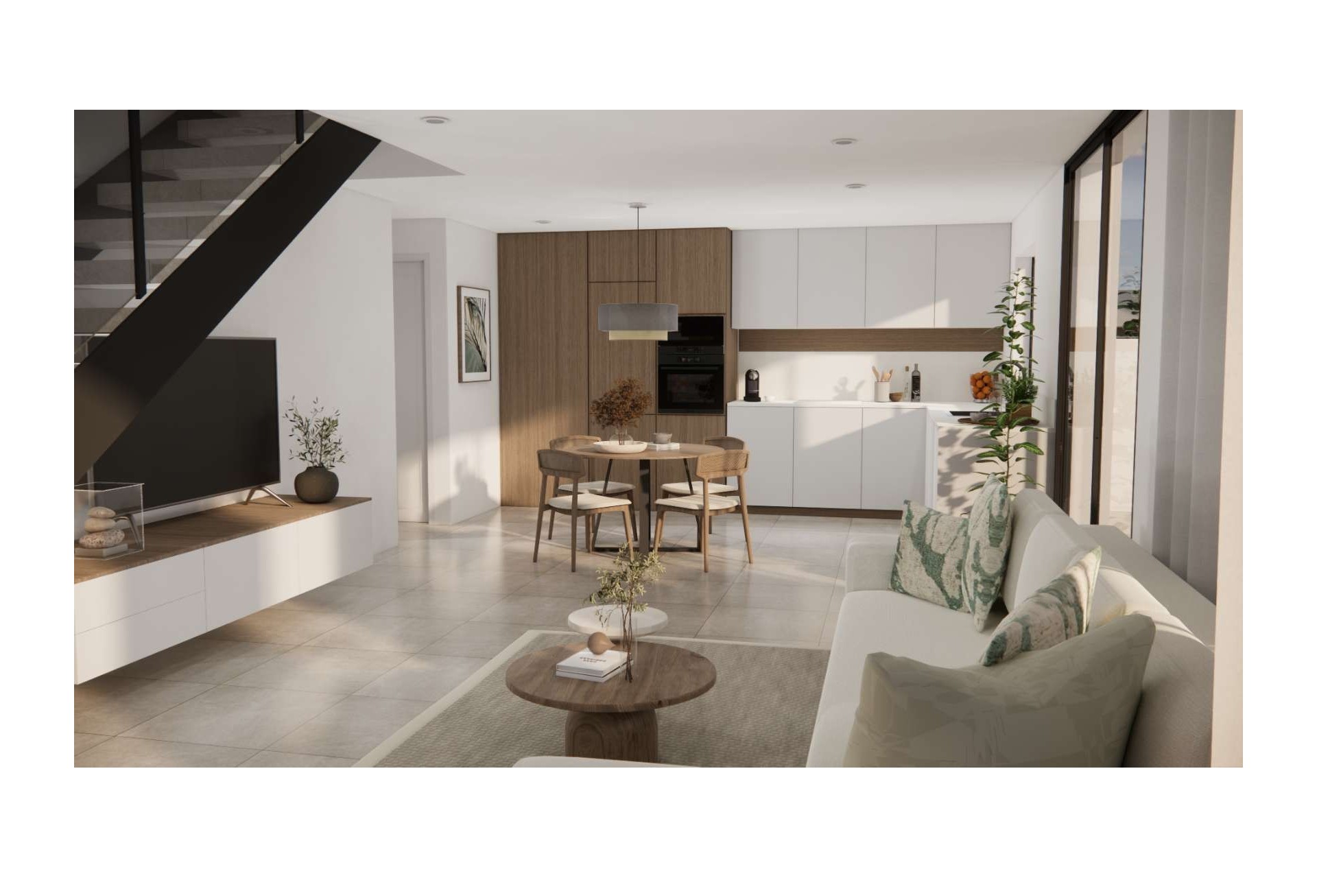 Elke woning beschikt over 3 slaapkamers en 2 badkamers, ideaal voor gezinnen of koppels die op zoek zijn naar ruimte en gemak. De ingerichte keuken sluit aan op een lichte, open leefruimte, ontworpen om maximaal te genieten van het mediterrane binnen- en buitenleven. Solarium optioneel.