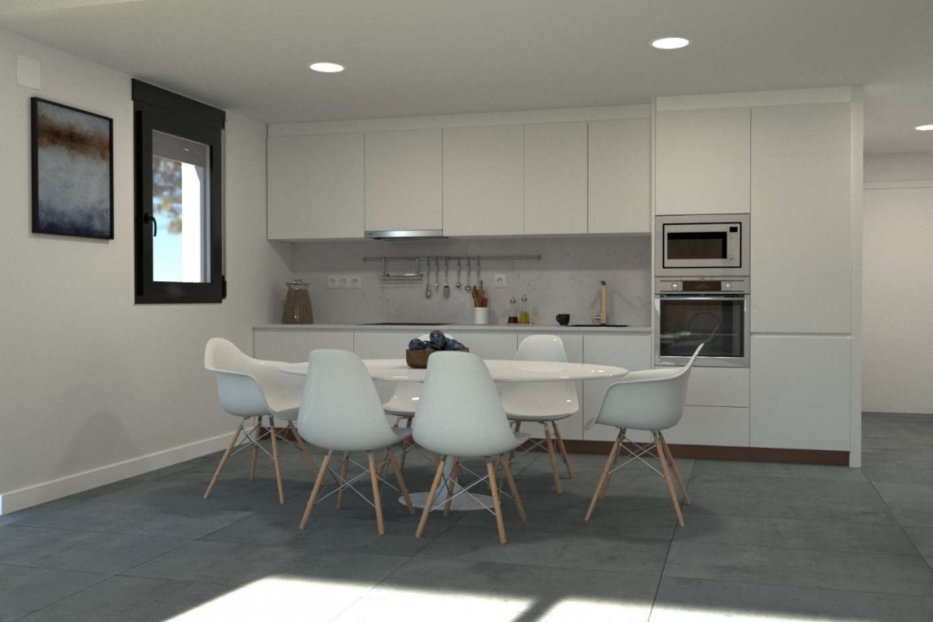Een opvallend kenmerk van deze woningen is het grote solarium op de eerste verdieping, ontworpen om het hele jaar door, de hele dag van de zon te genieten. Het solarium is tevens voorzien van een zomerkeuken, waardoor het de perfecte plek is voor buiten dineren, gezellig samenzijn of simpelweg ontspannen onder de Spaanse hemel. Binnen is de volledig ingerichte keuken uitgerust met huishoudtoestellen en is de woning voorbereid met een pre-installatie voor airconditioning, wat comfort in elk seizoen garandeert.
