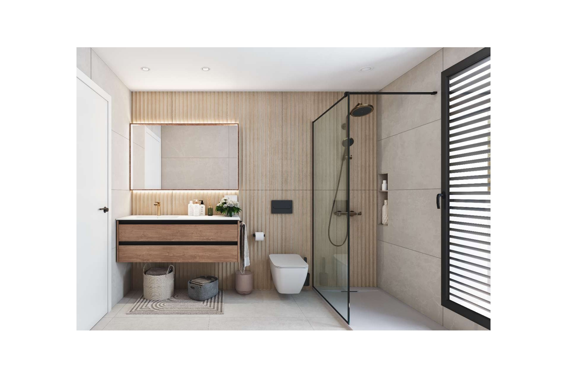 Op het gelijkvloers bevindt zich een lichtrijke woonkamer met open keuken, volledig uitgerust met moderne toestellen en perfect geïntegreerd in de leefruimte. Dankzij de grote raampartijen vloeien binnen en buiten naadloos in elkaar over en geniet u van een aangename connectie met de tuin en het zwembad. Op deze verdieping vindt u eveneens een comfortabele slaapkamer en een volledig ingerichte badkamer, ideaal voor gasten of voor wie gelijkvloers wil wonen.
