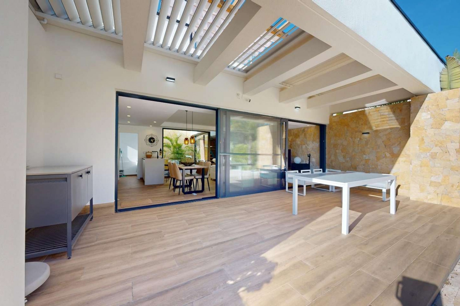 Deze stijlvolle woning beschikt over 3 slaapkamers en 3 moderne badkamers en werd ontworpen met comfort, licht en ruimte als prioriteit. De villa biedt meerdere terrassen, een zonnig solarium en een prachtige tuin met privézwembad, ideaal om het hele jaar door te genieten van het mediterrane buitenleven. Dankzij de ligging op de eerste lijn van de golf geniet u dagelijks van een open zicht op het groen en een bijzonder rustige woonomgeving.