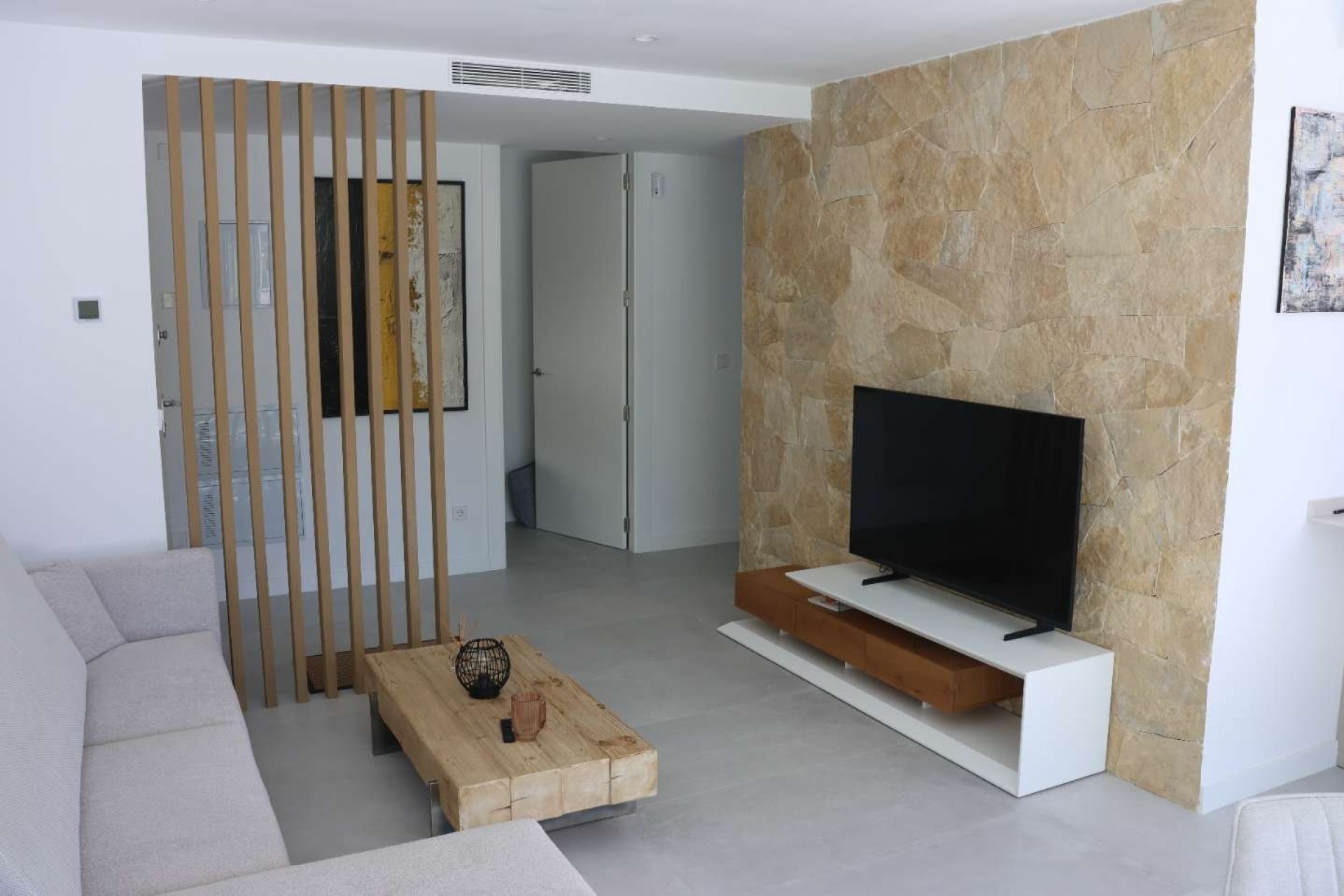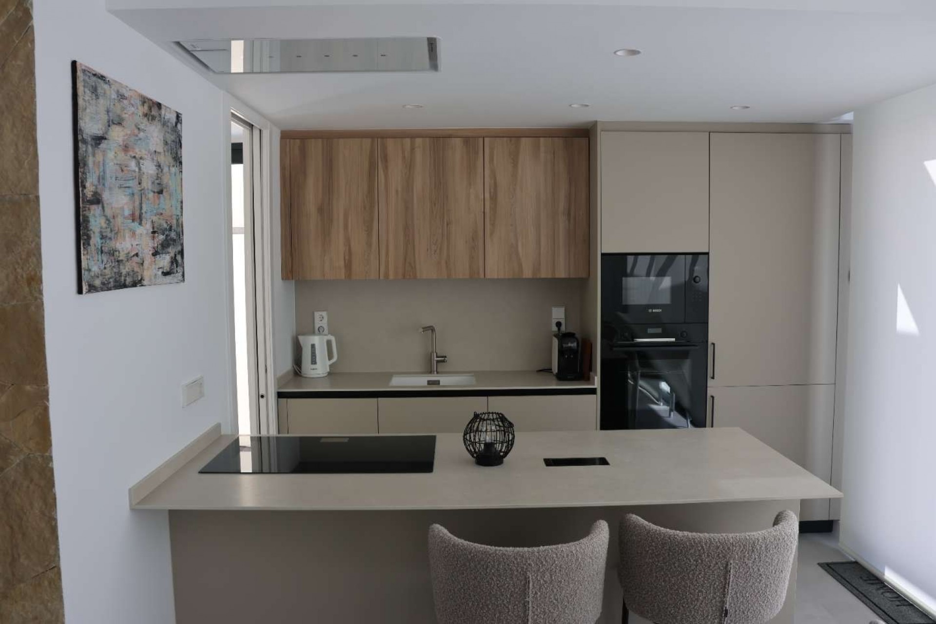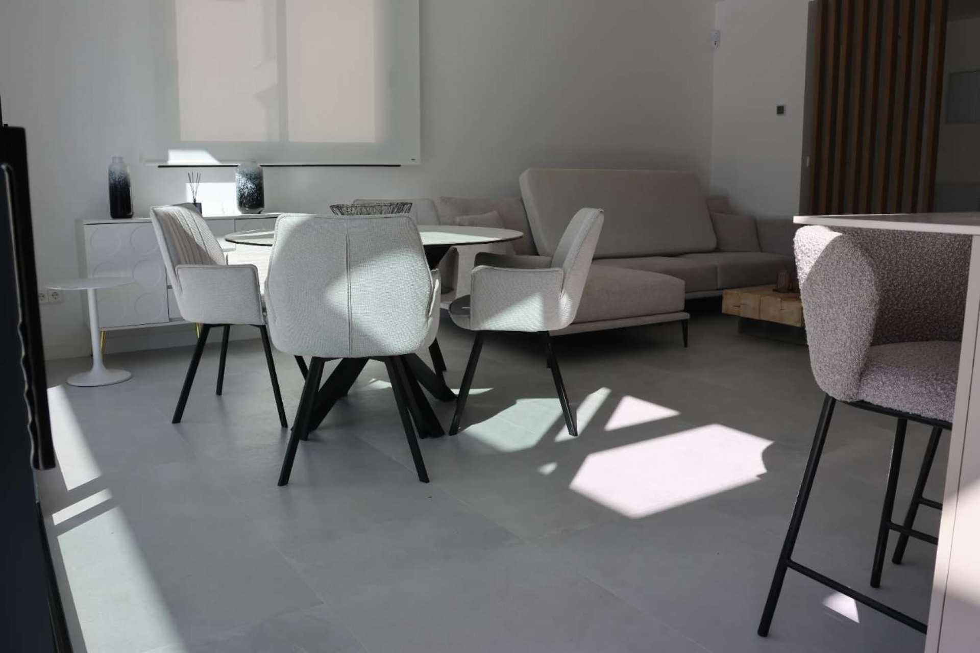 De woning beschikt over 2 slaapkamers en 2 moderne badkamers en is ontworpen met veel aandacht voor ruimte, lichtinval en gebruiksgemak. De open woon- en leefruimte gaat naadloos over in een ruim terras, ideaal om het hele jaar door te genieten van het aangename mediterrane klimaat.
