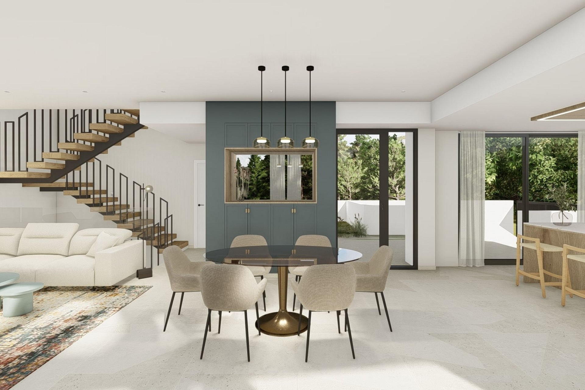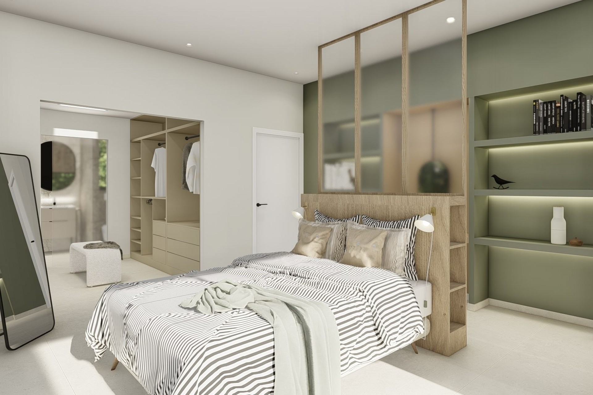 Te nowoczesne wille oferują na parterze dużą sypialnię z łazienką en suite, toaletę dla gości oraz przestronny salon z otwartą kuchnią, z którego wychodzi się na duży taras z basenem. Na piętrze znajduje się sypialnia z garderobą i łazienką en suite oraz prywatnym tarasem, a także druga sypialnia z łazienką i własnym tarasem. W piwnicy znajduje się garaż oraz otwarta przestrzeń, którą można dowolnie zaaranżować, a także taras i ogród.