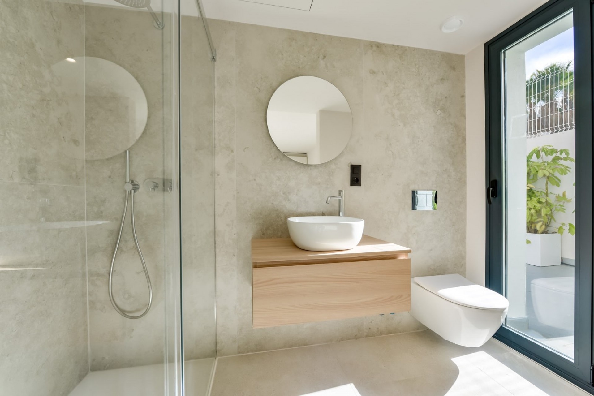 This villa has unique features, on the ground floor we find on one side of the house an en suite bedroom with private bathroom and on the other side, a spacious living room that includes a dining area with enough capacity for a large family, toilet and open kitchen where the views are the protagonists thanks to the glazed walls that give it a nice warmth.