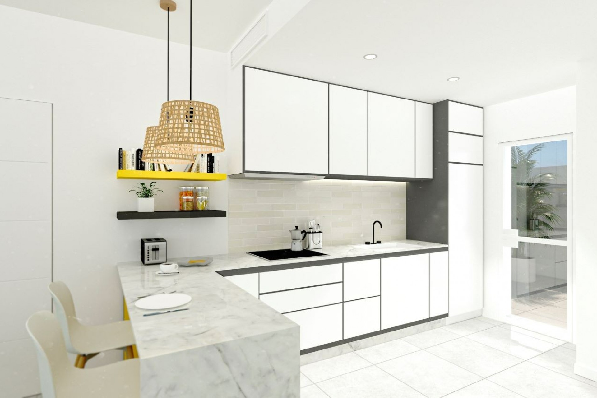 A completely new and different residential with a modern and contemporary design. It consists of 6 luxurious villas of first quality, with 3 bedrooms, one on the ground floor and two on the first floor with a solarium of more than 30 m2 with great privacy. As well as 3 bathrooms, one private in master suite.