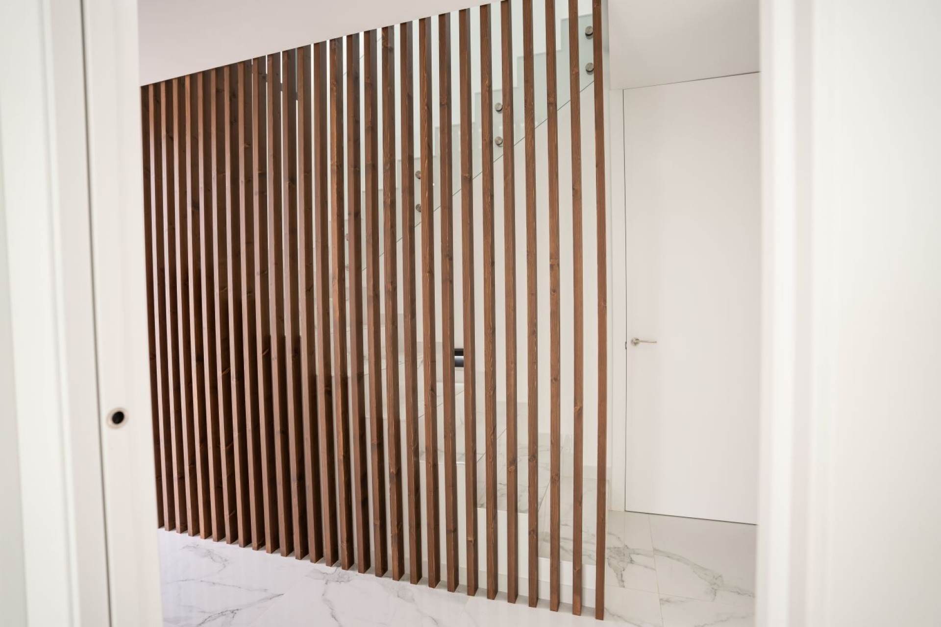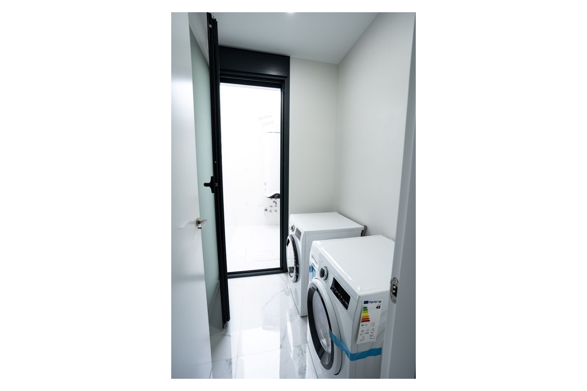 On the main floor, from the entrance we access the hall where we can find the living area, here we can find the kitchen totally open to the dining room and the living room from where we have direct access to the terrace. Once on the terrace we can find the swimming pool which comes with a relax area where you can enjoy the sun and the views or have dinner on the barbecue. Next to the kitchen there is also a toilet.