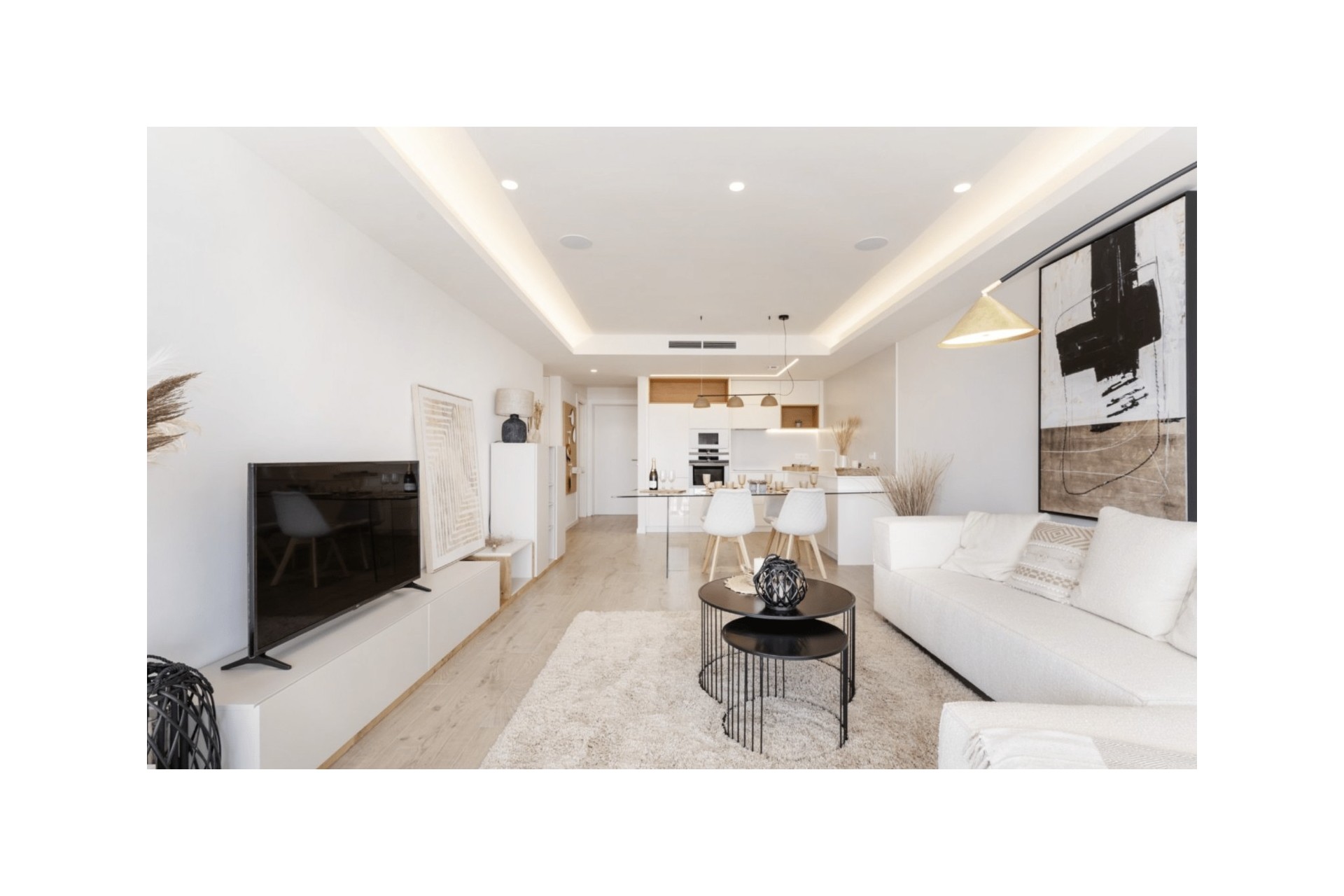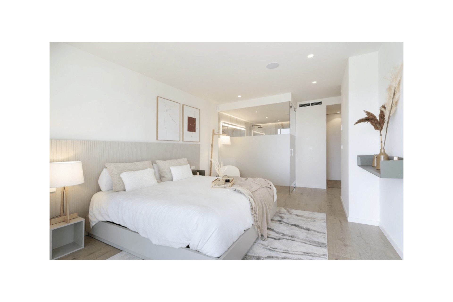 Apartments with 3 bedrooms, all with access to a terrace where you can enjoy the Mediterranean sun. The open plan kitchen with the living-dining room leads out to the terrace. Equipped with underfloor heating, ducted hot and cold air conditioning, hot water from the energy efficient Ecodan hybrid system, first class appliances, technical lighting, alarm, ventilation system, home automation system and lift.