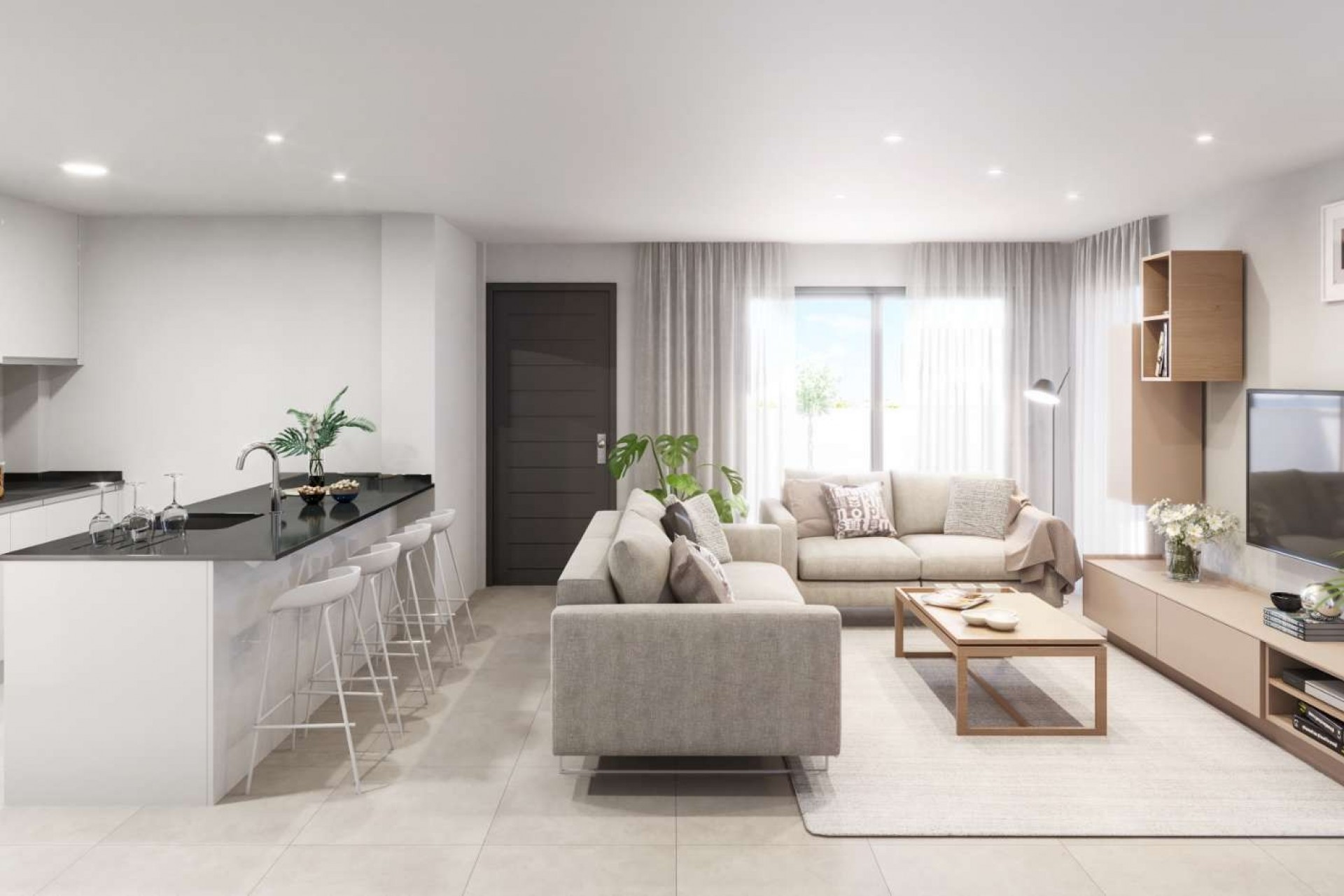 The interiors are both stylish and practical, featuring fully equipped kitchens with appliances, and bathrooms with a modern vanity unit, washbasin, and lighting. All homes include pre-installation for ducted air conditioning via the false ceiling. Upper-floor units offer a private solarium, and all residents can enjoy the communal swimming pool area—ideal for relaxation and leisure.