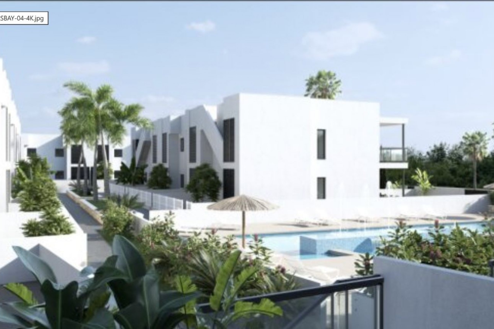The residential stands out for having a pleasant communal area formed by gardens, walking areas and swimming pool. The flats are divided into ground floor plus two upper floors. The ground floor apartments have large terraces, and the penthouses have private solariums. In the case of the bungalows, you can choose between ground floor with garden or top floor with solarium.