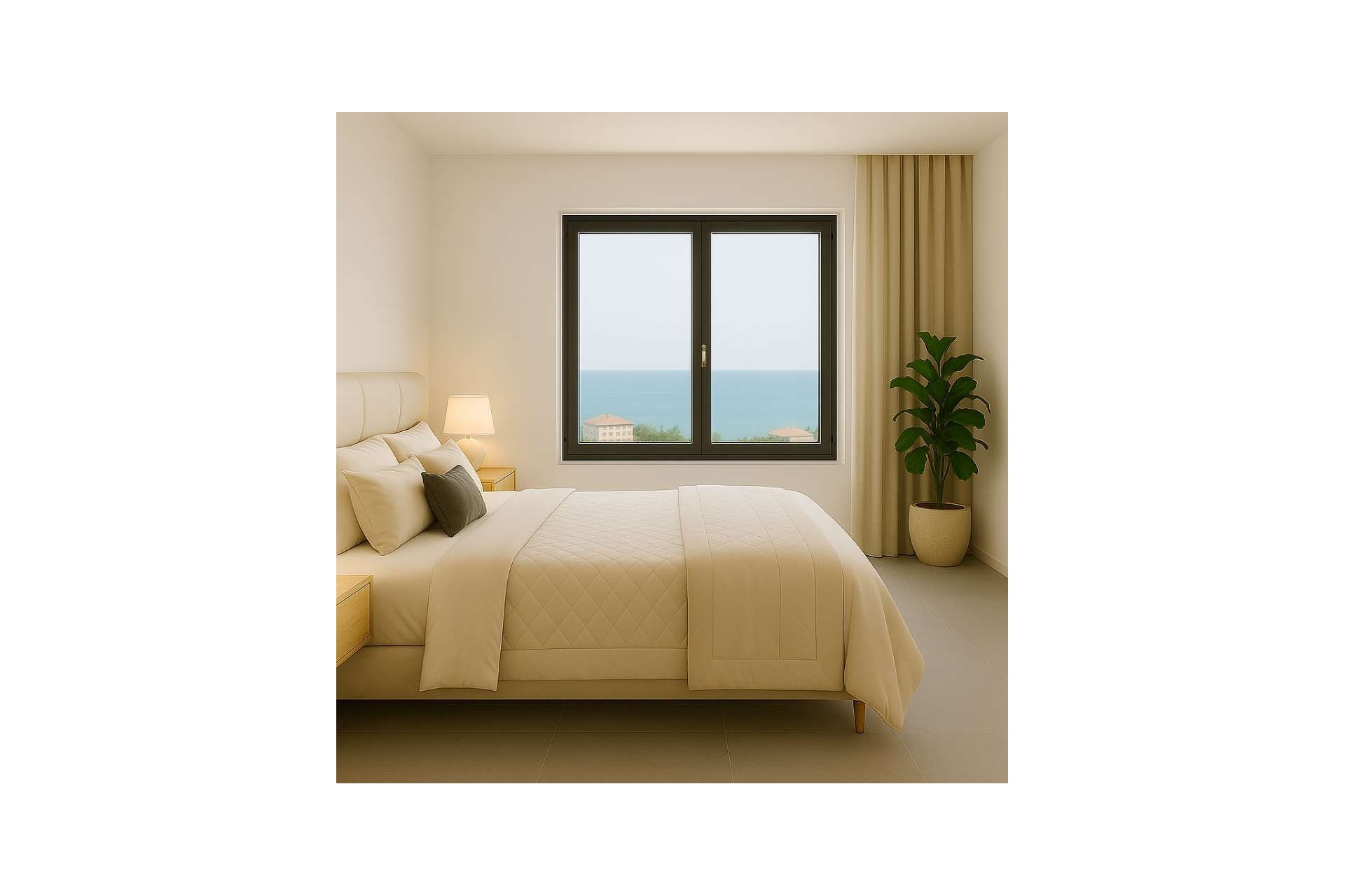 The apartments are laid out with 2 bedrooms and 2 bathrooms and offer a comfortable, practical living space suitable for both personal use and rental. The fitted kitchen connects seamlessly with the living area and creates a welcoming place to come together. Thanks to air conditioning, comfort is guaranteed all year round.