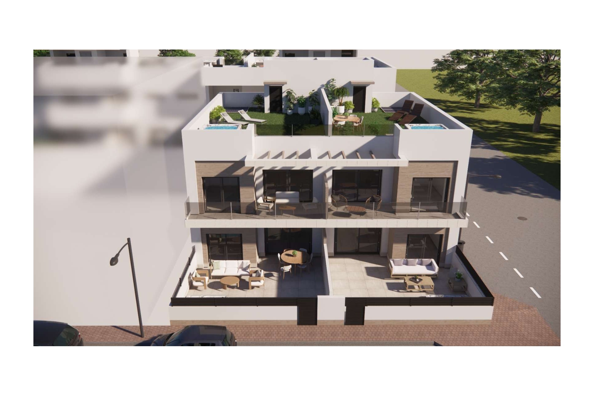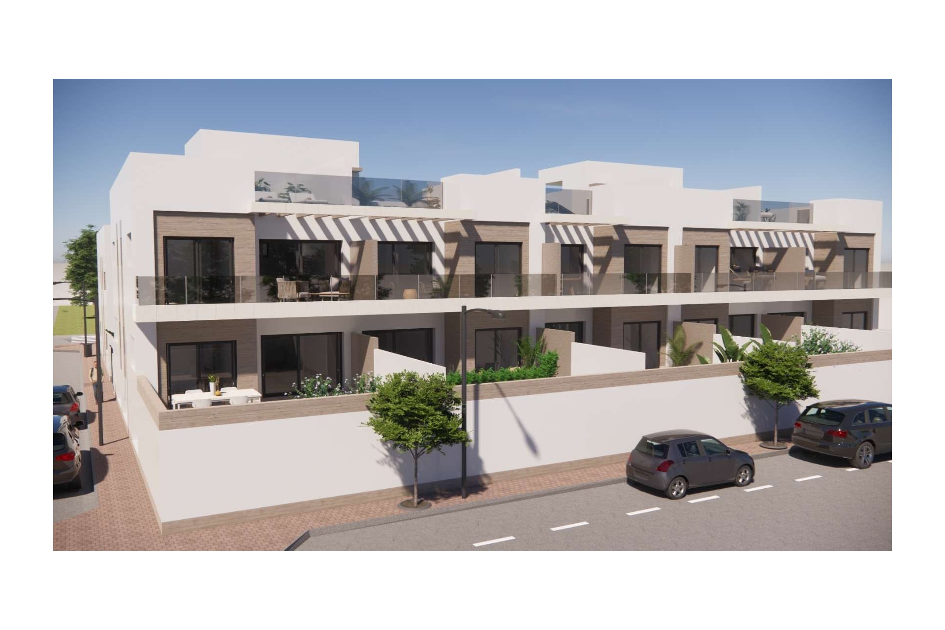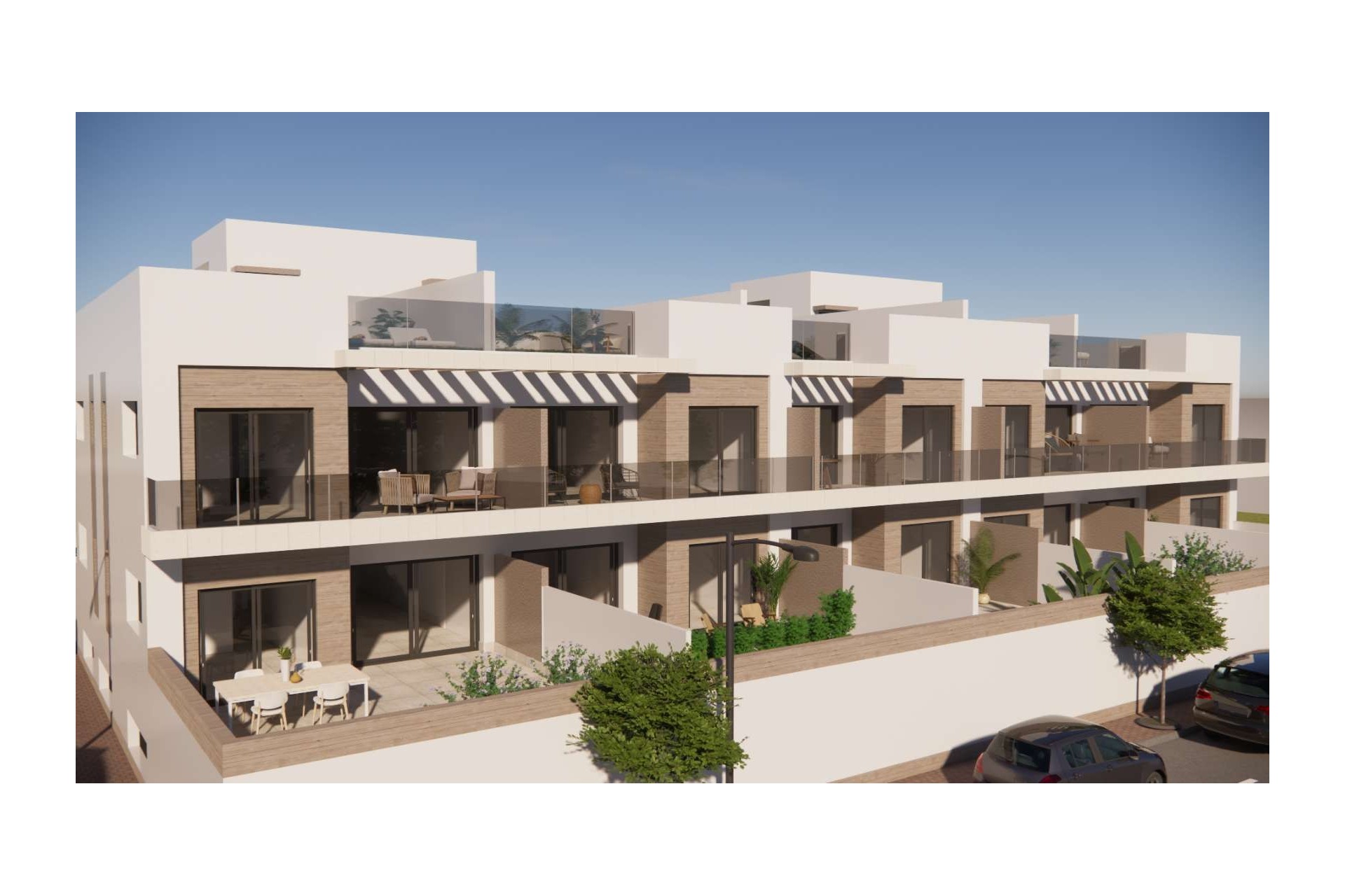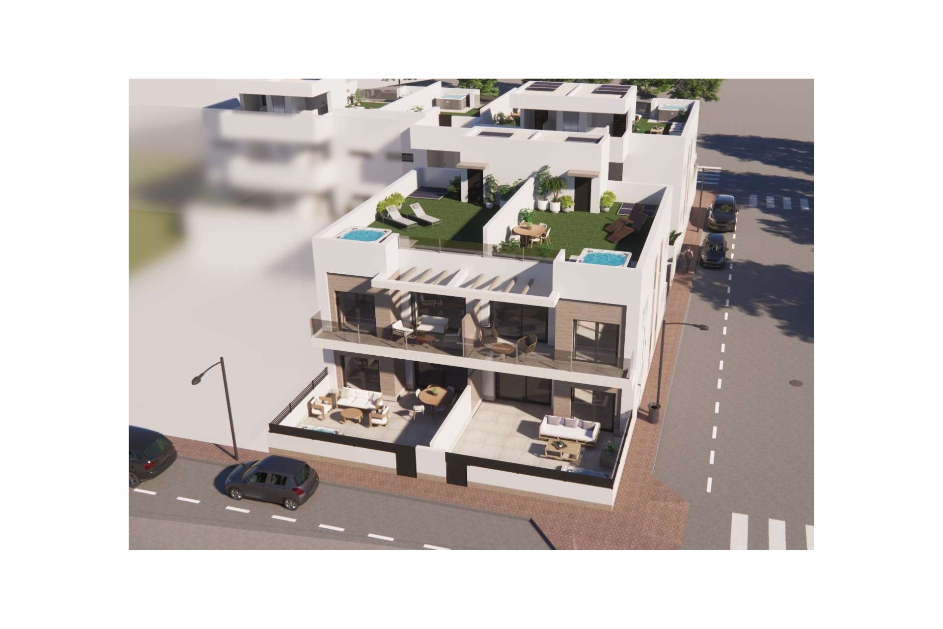 In Rojales you live in style and comfort, with plenty of space to enjoy outdoor living. These modern apartments combine light, functionality and contemporary architecture. You can choose between a ground-floor apartment with a large terrace or a first-floor apartment with a spacious solarium, where you can relax or dine under the stars in complete privacy. Optionally, the terrace or solarium can be equipped with a jacuzzi (at an additional cost).